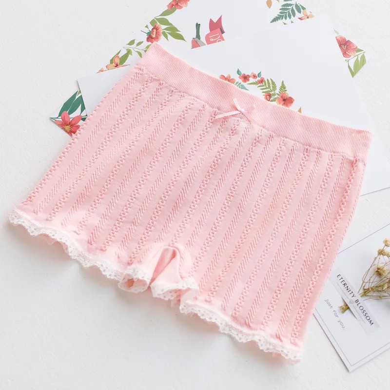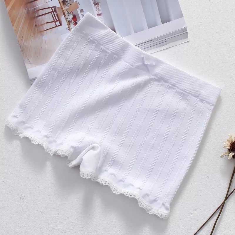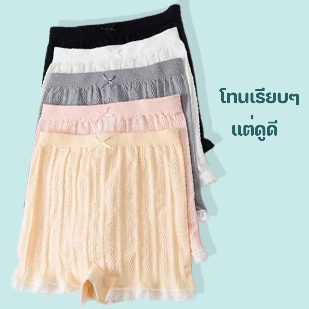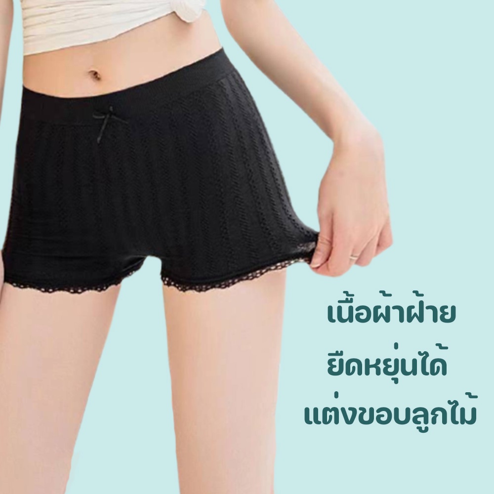 กางเกงซับใน ผู้หญิง ทรงขาสั้น เเต่งโบว์ กางเกงใน เเต่งขอบระบาย ผ้านิ่ม ยืด
