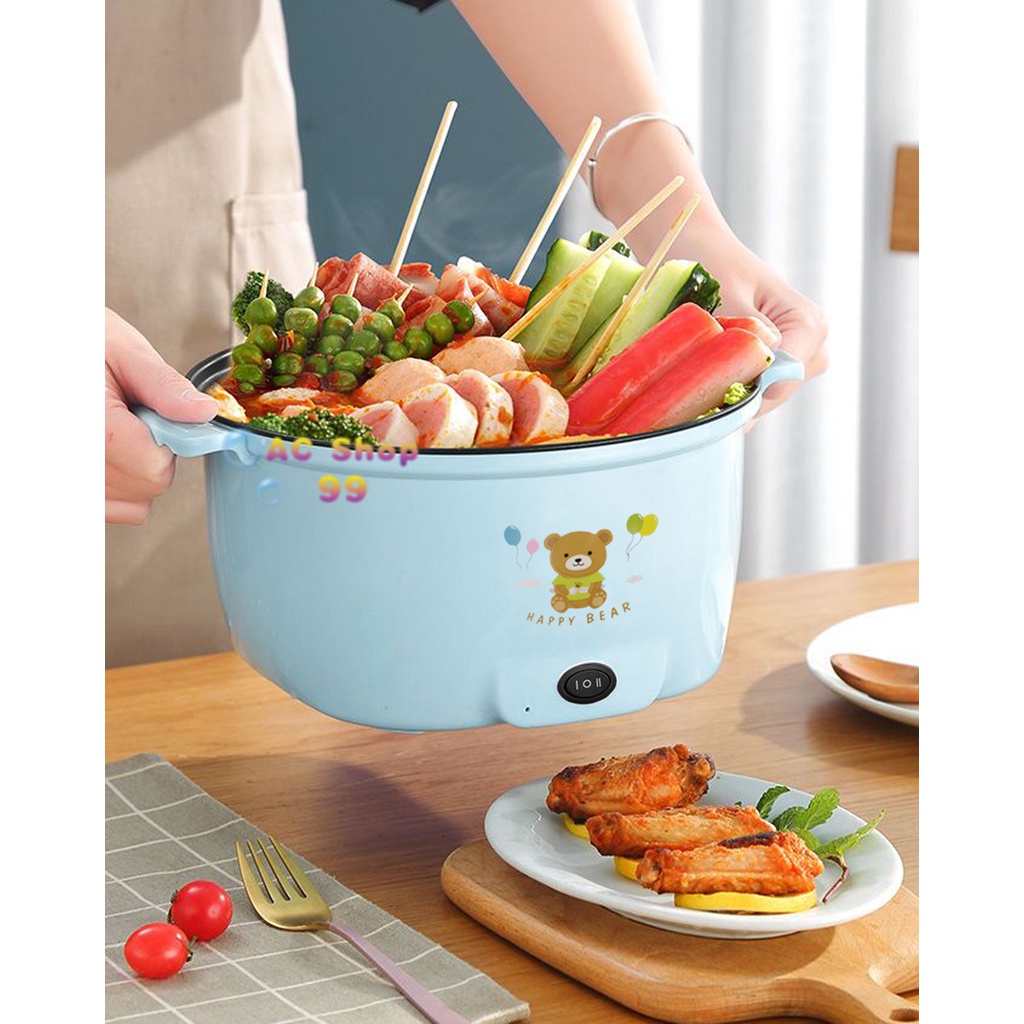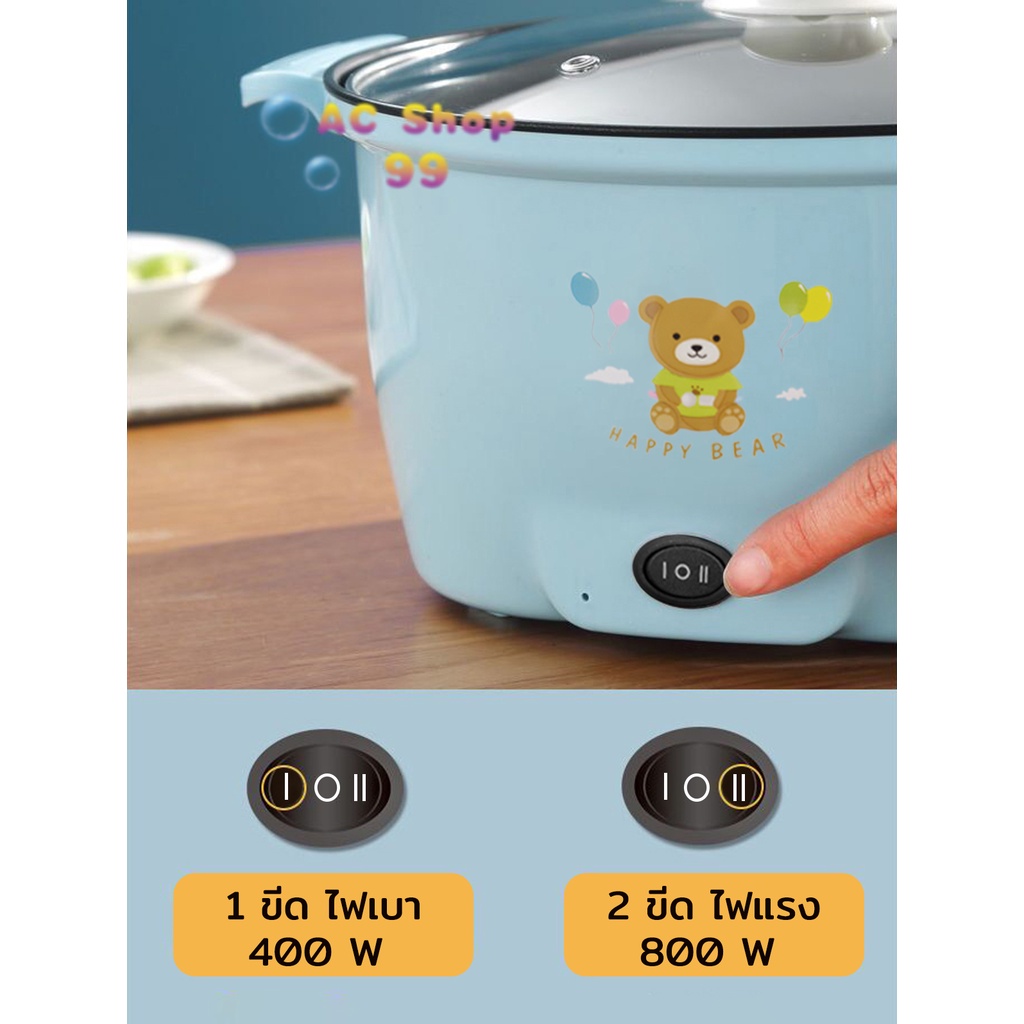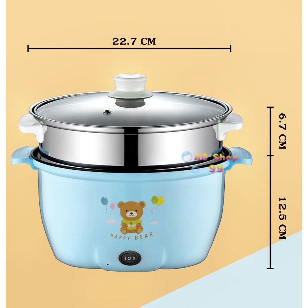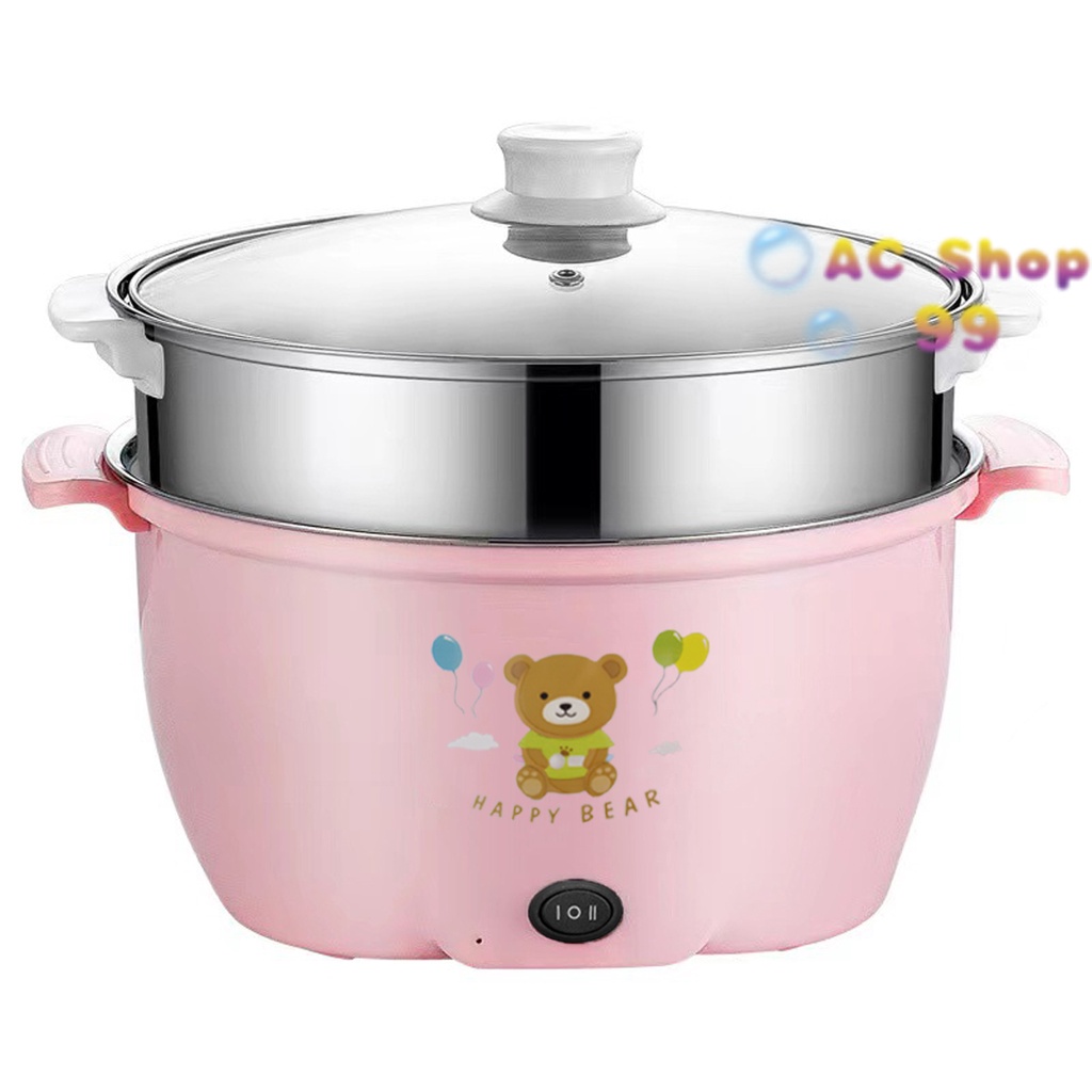 [พร้อมส่ง] หม้อไฟฟ้าอเนกประสงค์ 22CM หม้อไฟฟ้า ลายหมี