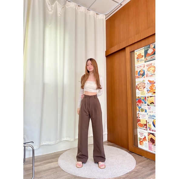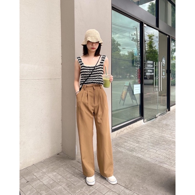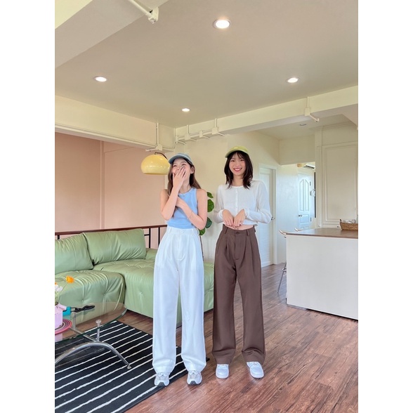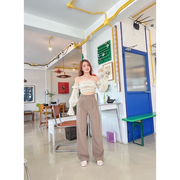 HELLOYELLOWLAND | iwory pants กางเกงผ้าทรงกระบอกกางเกงขากระบอก