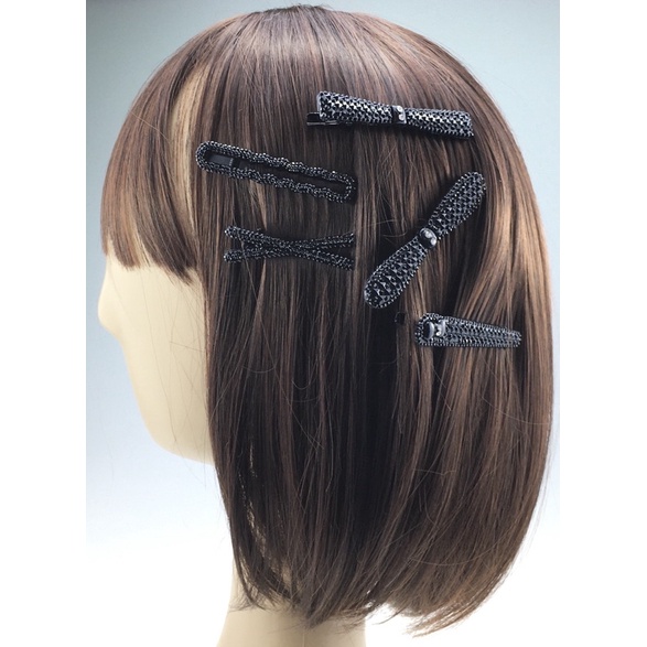 HVL กิ๊บปากเป็ดวิบวับเรียบหรู สีดำ 1 แผง(แผง2ชิ้น) B27