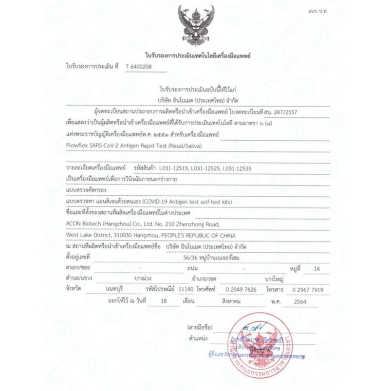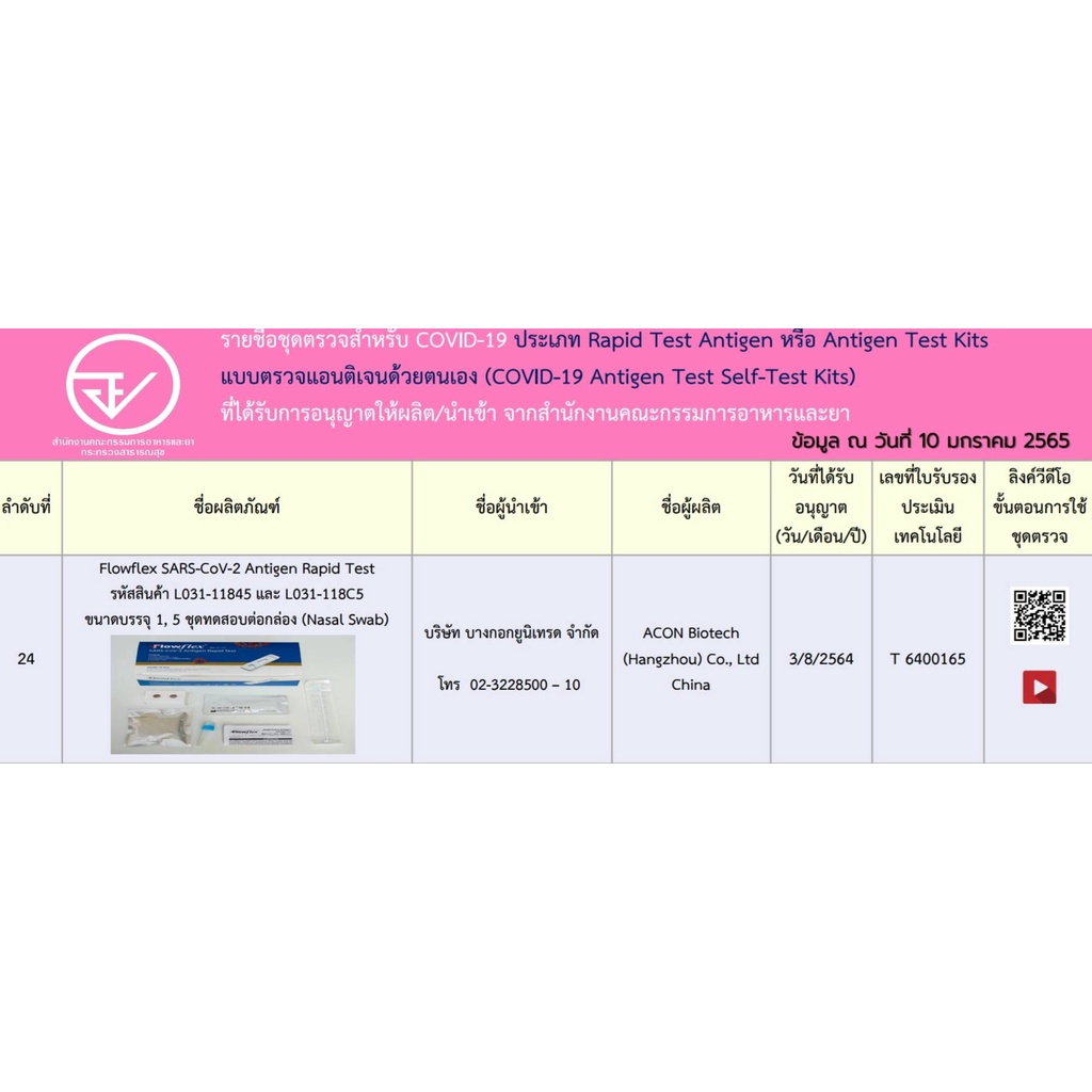 ชุดตรวจโควิด ATK Flowflex SARS-CoV-2 Antigen Self Test Nasal ตรวจโอมิครอนได้ เก็บตัวอย่างจากทางช่องจมูก Omicron Nasal Swab