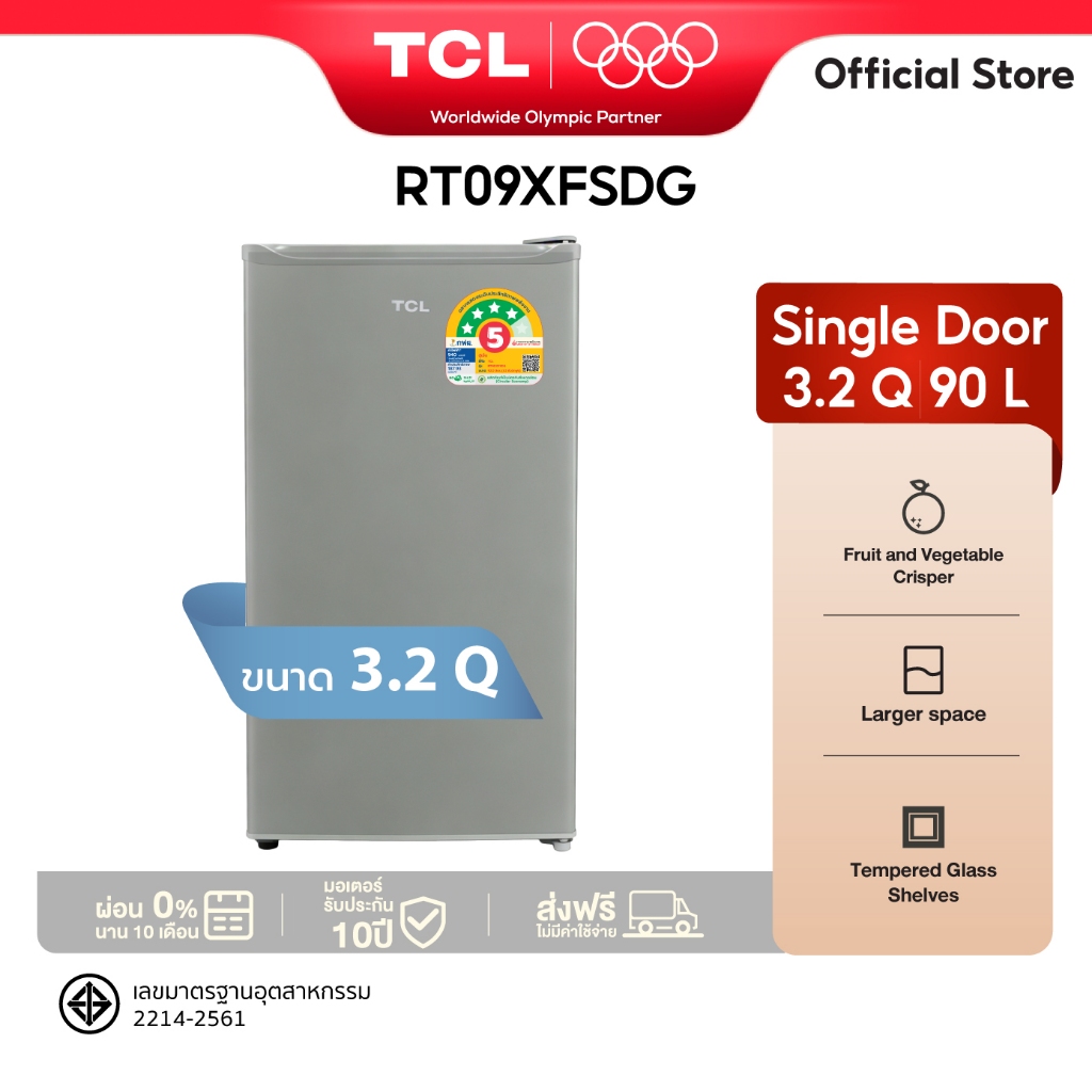 TCL ตู้เย็น 1 ประตู 3.2 Q สีเทา รุ่น RT09XFSDG รับประกัน 10 ปี พร้อมแผงควบคุมอุณหภูมิ