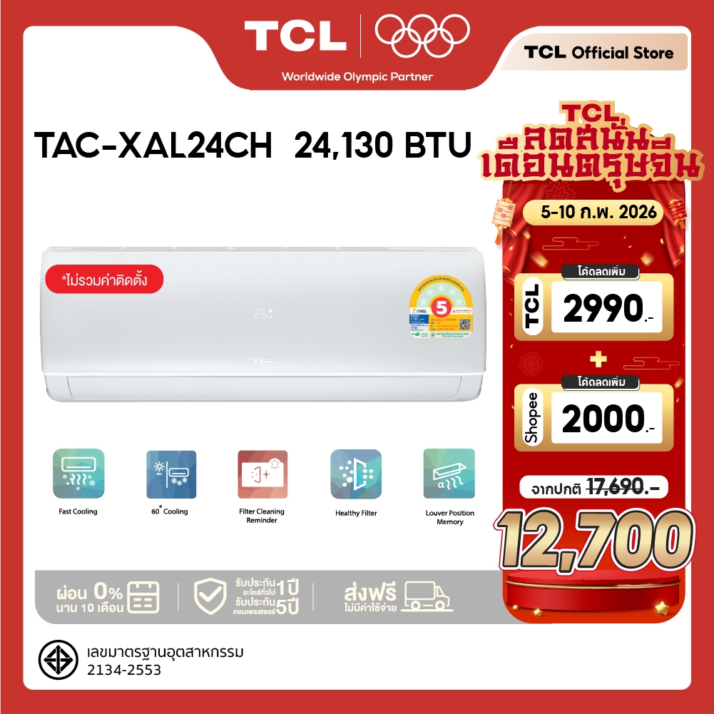 TCL แอร์ ขนาด 9,490 - 24,130 BTU BTU ระบบ Inverter รุ่น TAC-XALCH [ผ่อน 0% นาน 10 เดือน]