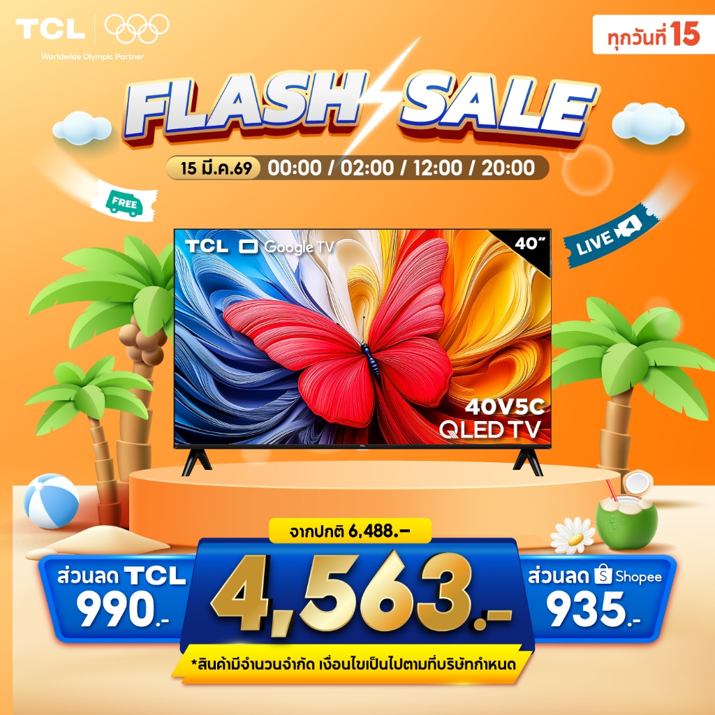 NEW 2025 TCL ทีวี 40 นิ้ว FHD QLED Google TV รุ่น 40V5C ระบบปฏิบัติการ Google/Youtube
