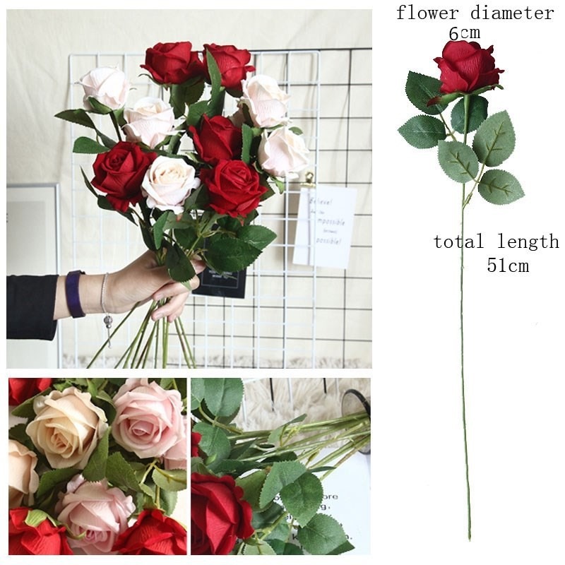 ดอกกุหลาบผ้าไหมประดิษฐ์คุณภาพสูงสําหรับตกแต่งงานแต่งงานวันวาเลนไทน์