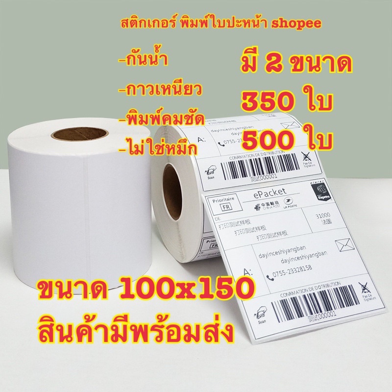 กระดาษสติ๊กเกอร์ความร้อน กระดาษลาเบล ใบปะหน้า 100x150mm. แบบพับ ม้วน ลาเบล ปริ้นใบปะหน้า Thermal Sticker