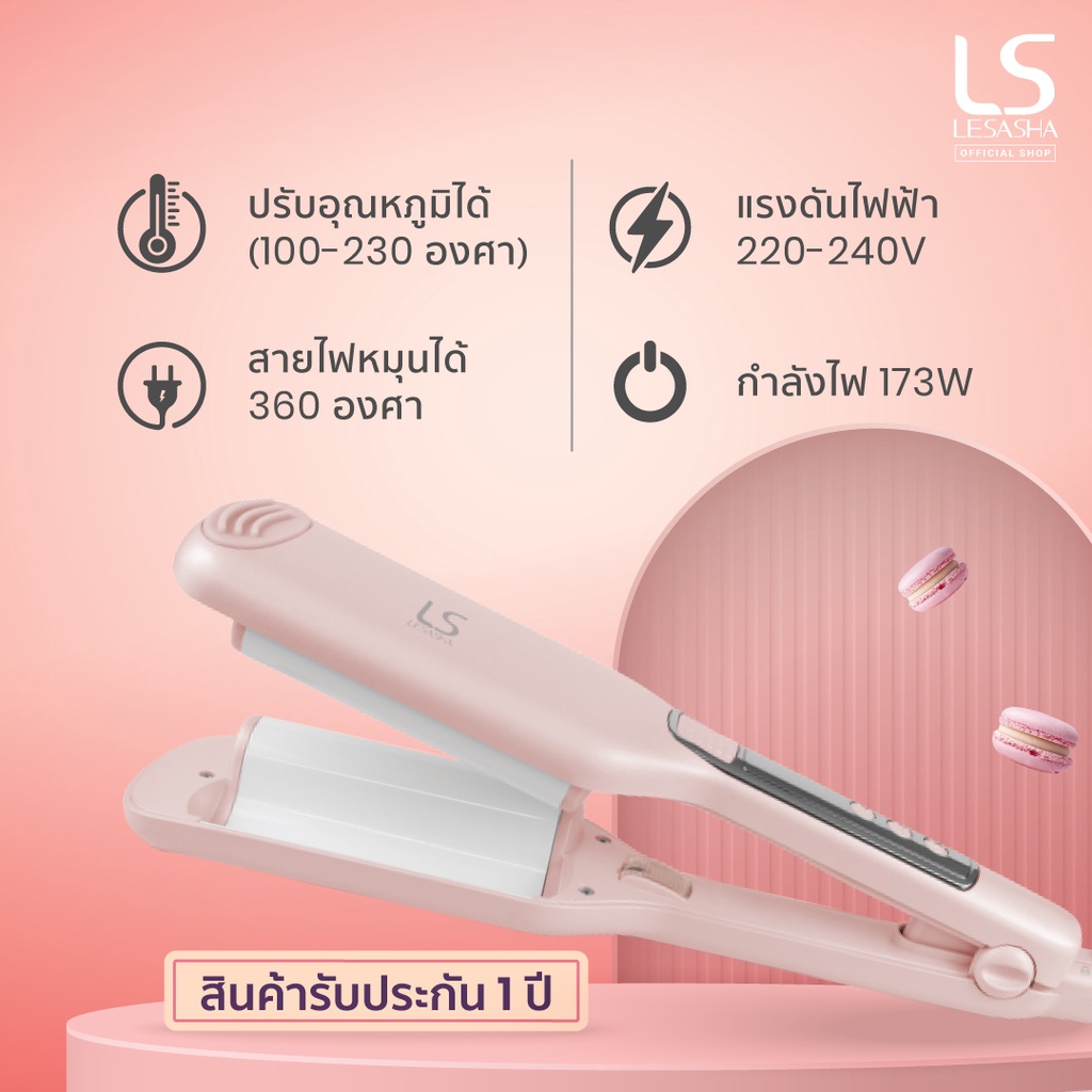 LESASHA เครื่องหนีบผม MACARON WAVY HAIR CRIMPER: ROSE รุ่น LS1554 ลอนเมอเมด ดั่งเจ้าหญิง ง่ายๆ แค่หนีบ