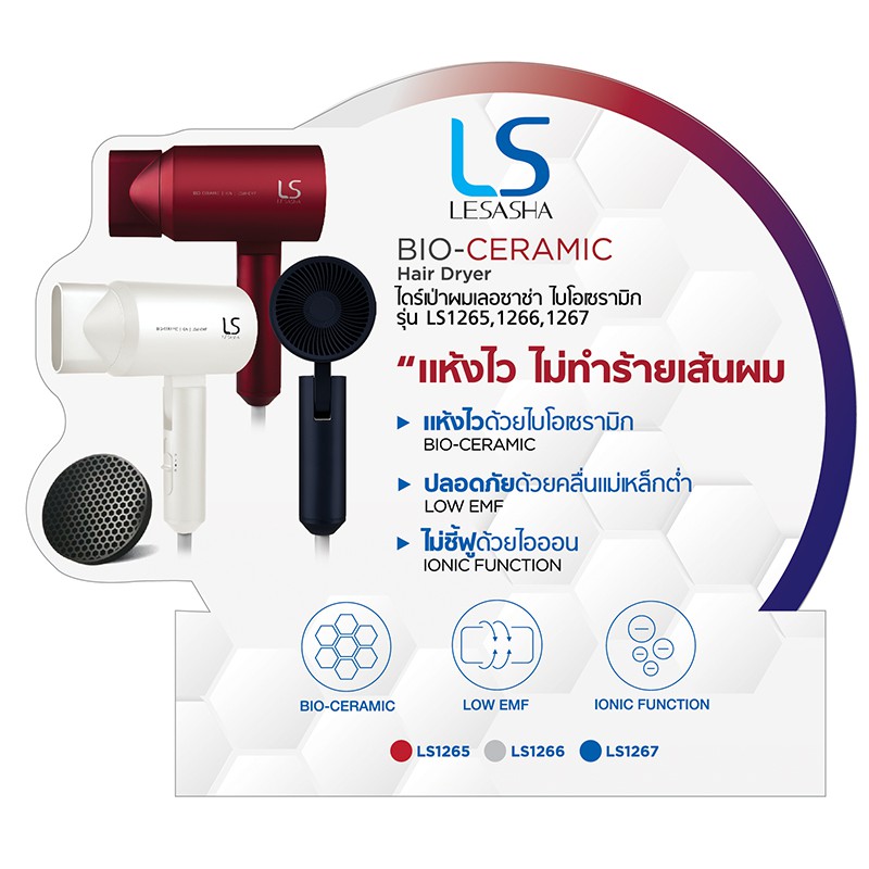 LESASHA ไดร์เป่าผมนวัตกรรม 1200W รุ่น BIO-CERAMIC (สีแดง สีขาว สีนำเงิน) HAIR DRYER ไม่ทำร้ายเส้นผม LS1265,LS1266,LS1267