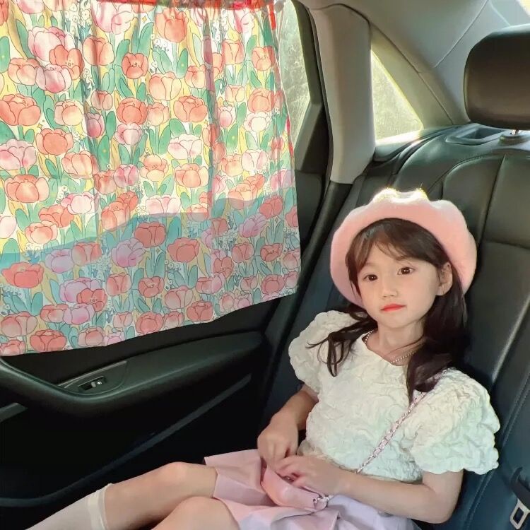 ม่านบังแดดรถยนต์ ม่านแม่เหล็ก ป้องกันรังสียูวี ลายการ์ตูน ผ้าม่านลายสก๊อตกันแดดสําหรับเด็ก