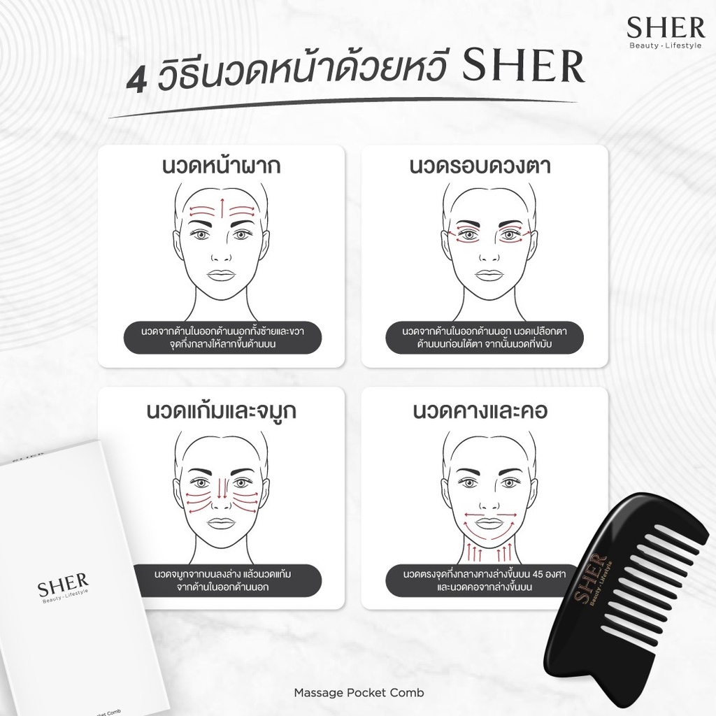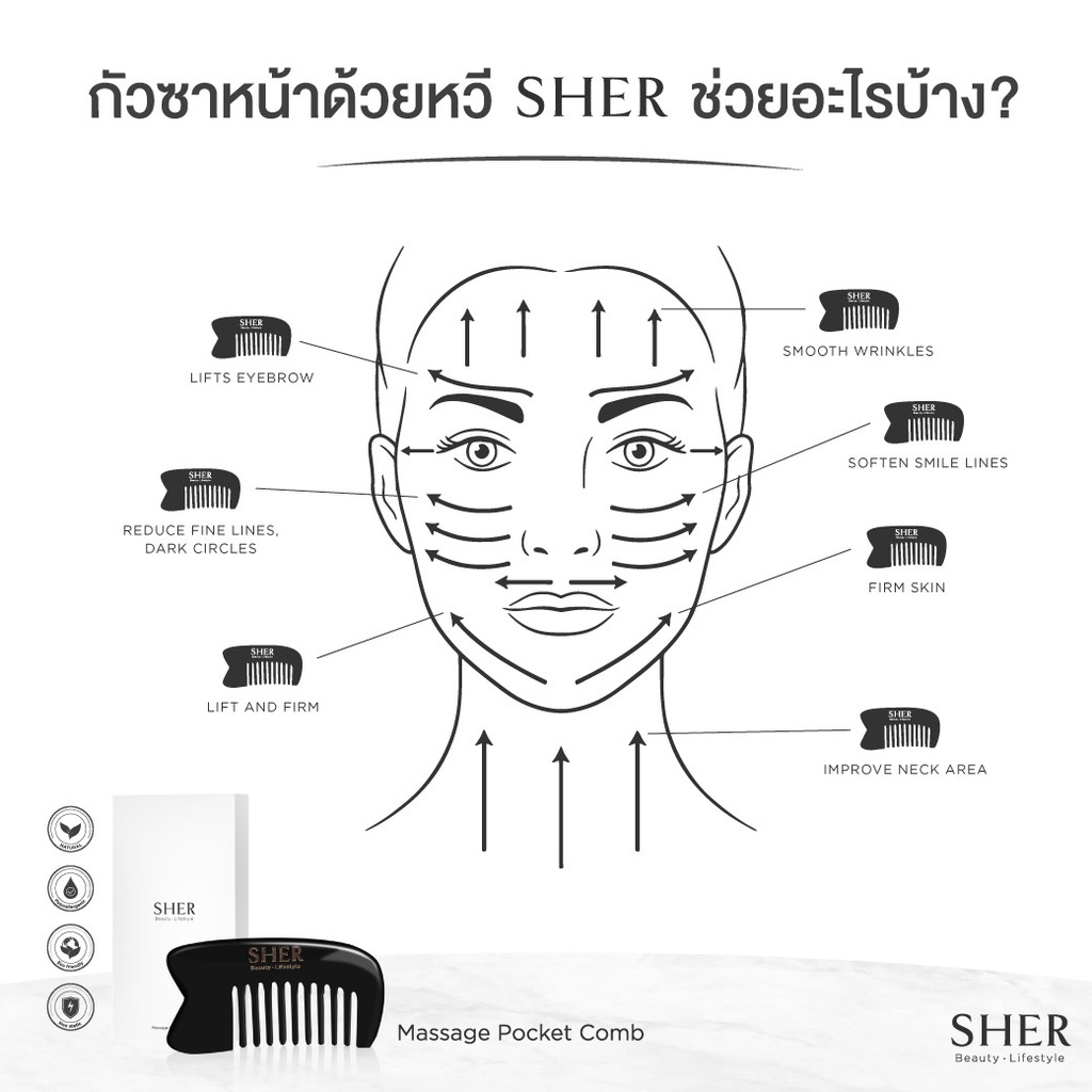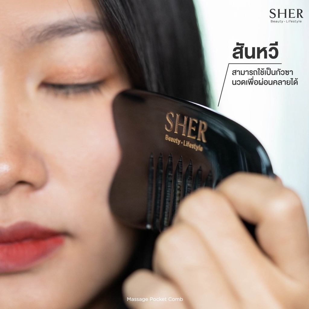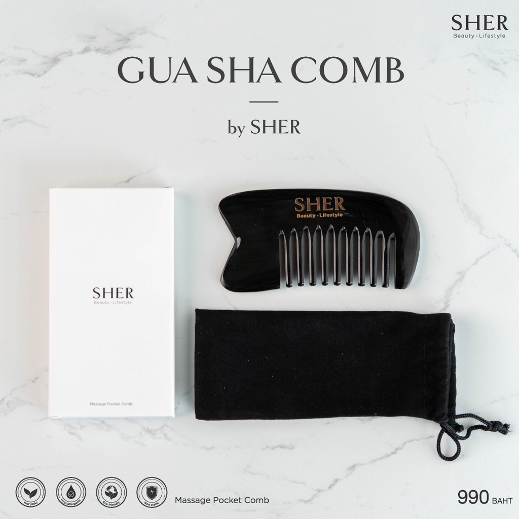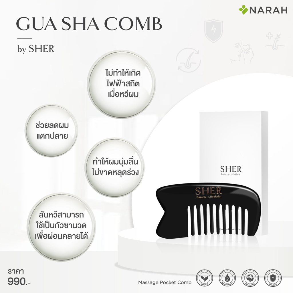 NARAH GUA SHA COMB by SHER นราห์หวีกัวซา หวีเขาจามรี หวีนวดเพื่อสุขภาพ กัวซาหน้าเด้ง ไล่เลือดลม เส้นผมแข็งแรง ไม่แตกปลาย