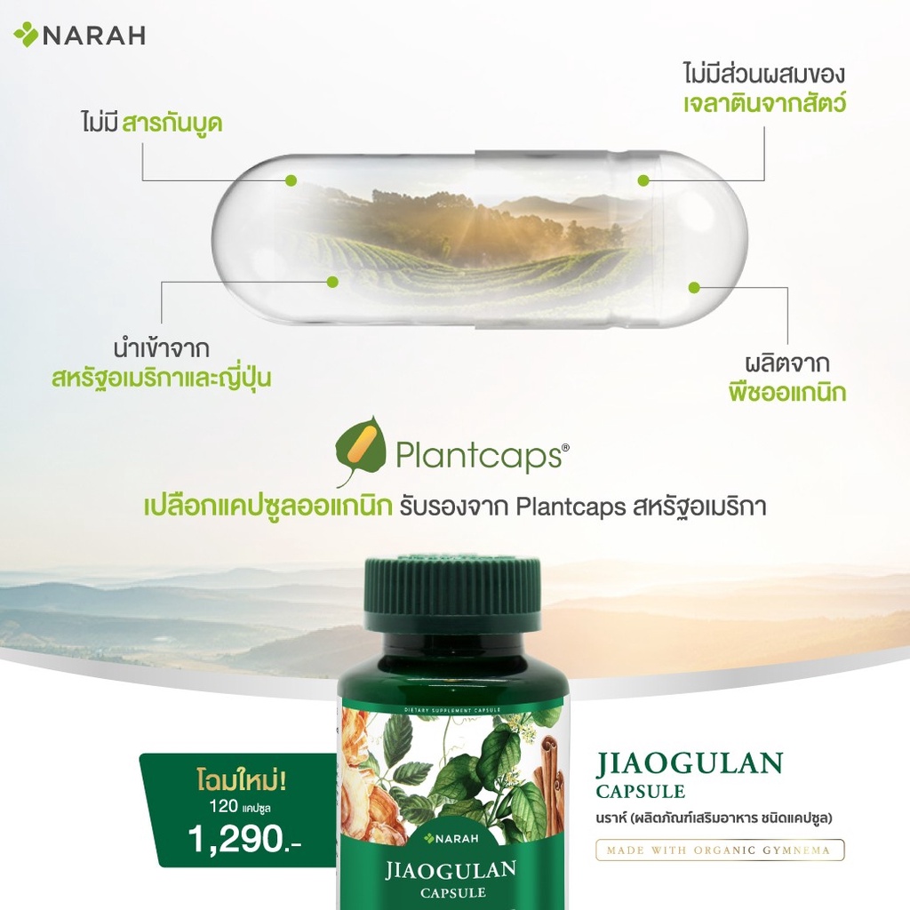 NARAH Jiaogulan Capsule สมุนไพรนราห์ชนิดแคปซูล (ขนาด 120 แคปซูลต่อขวด)