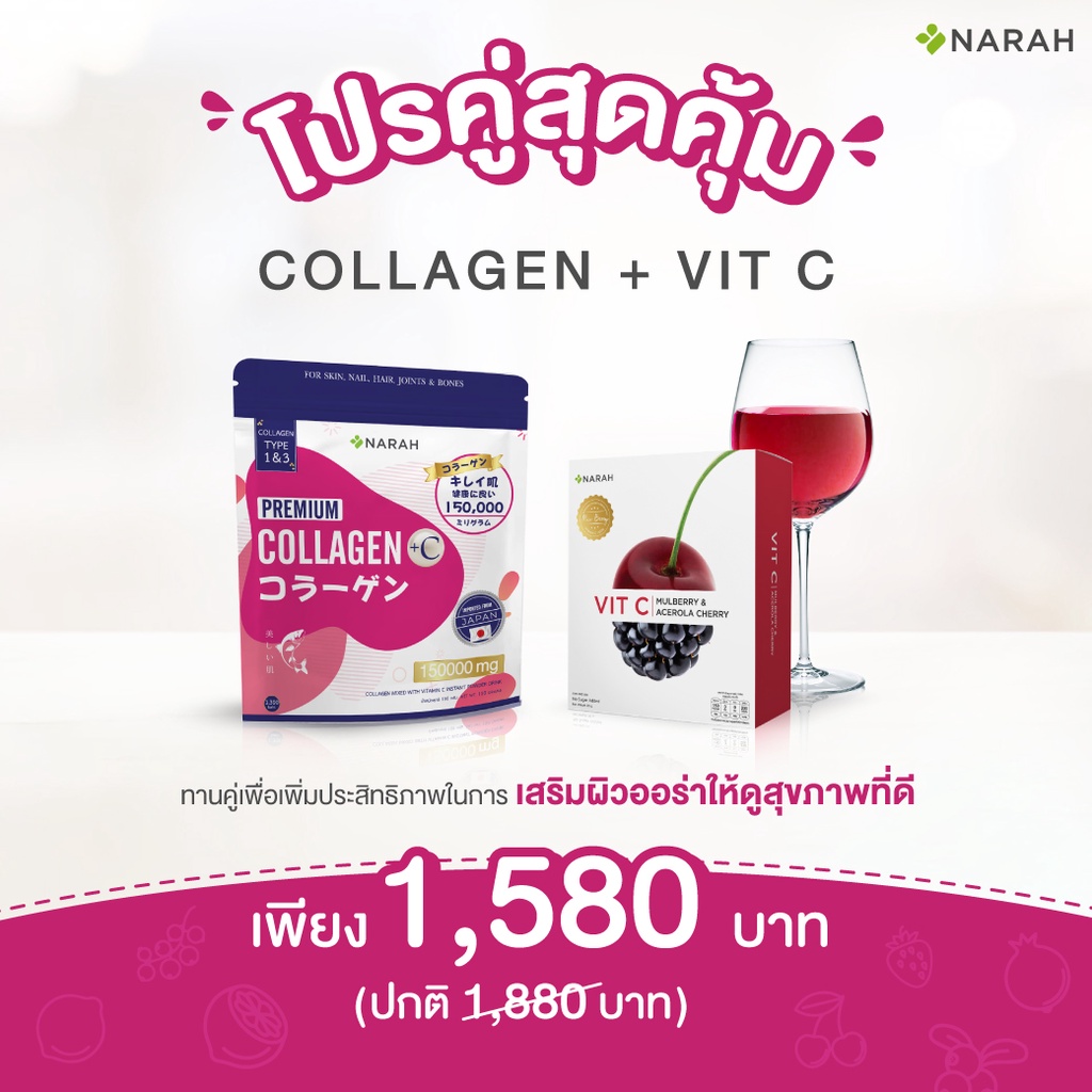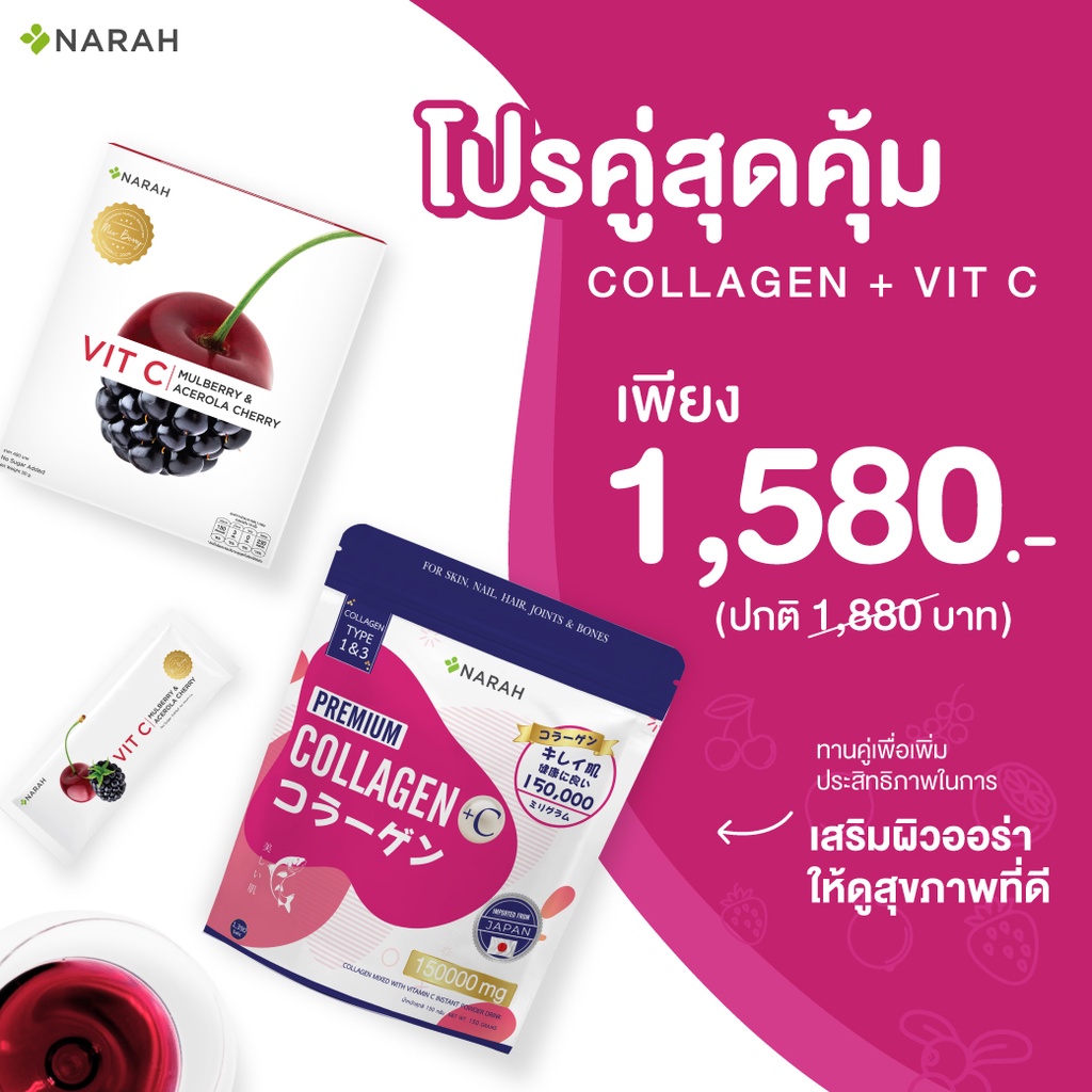 NARAH (นราห์) Premium Collagen คอลลาเจนนราห์ ไตรเปปไทด์ x Narah Vit C นราห์วิตามินซี 120 mg โปรแพ็คคู่