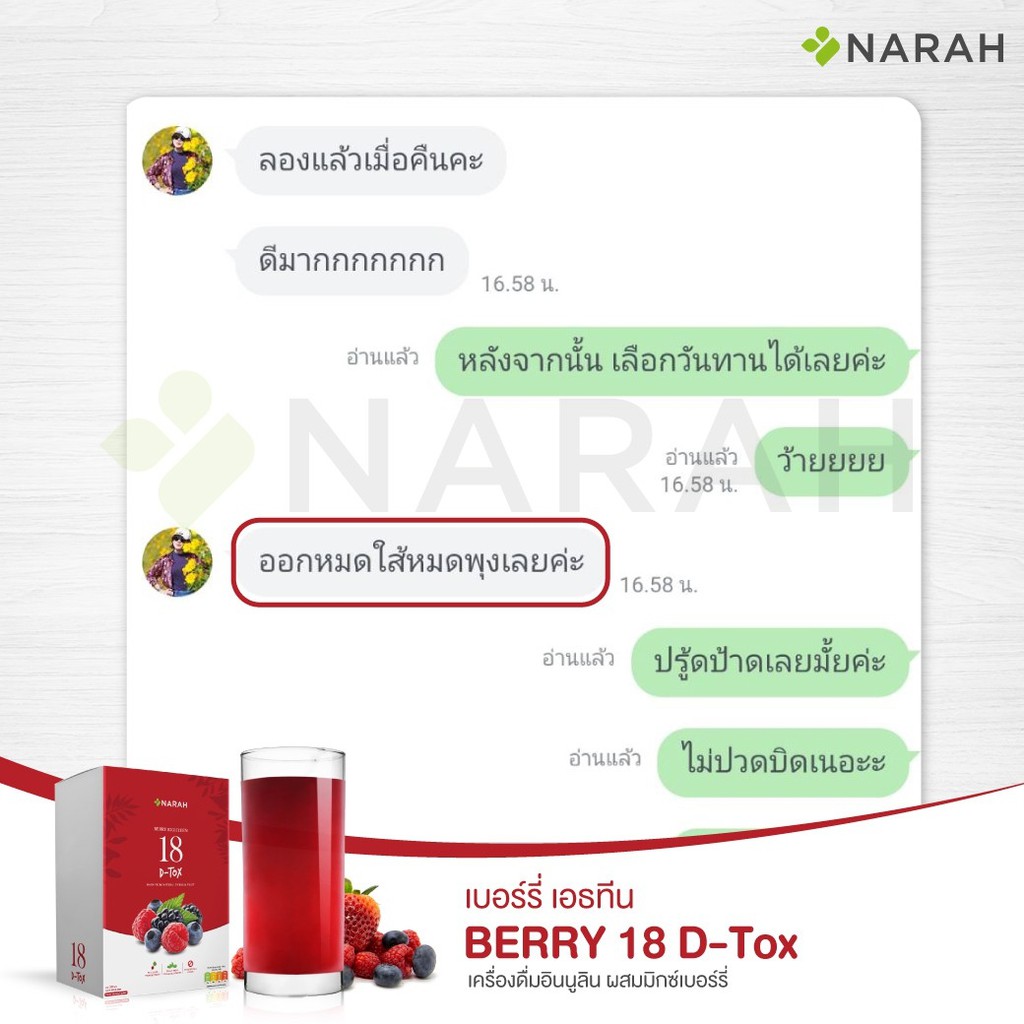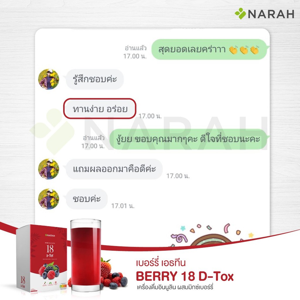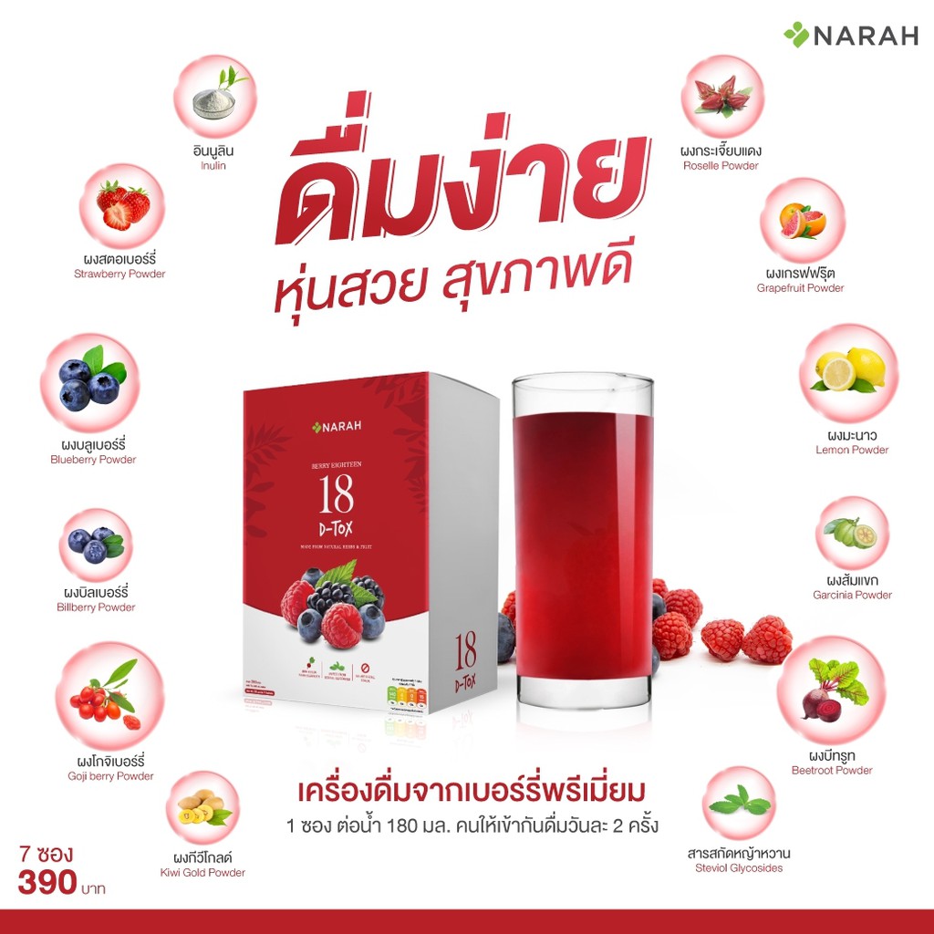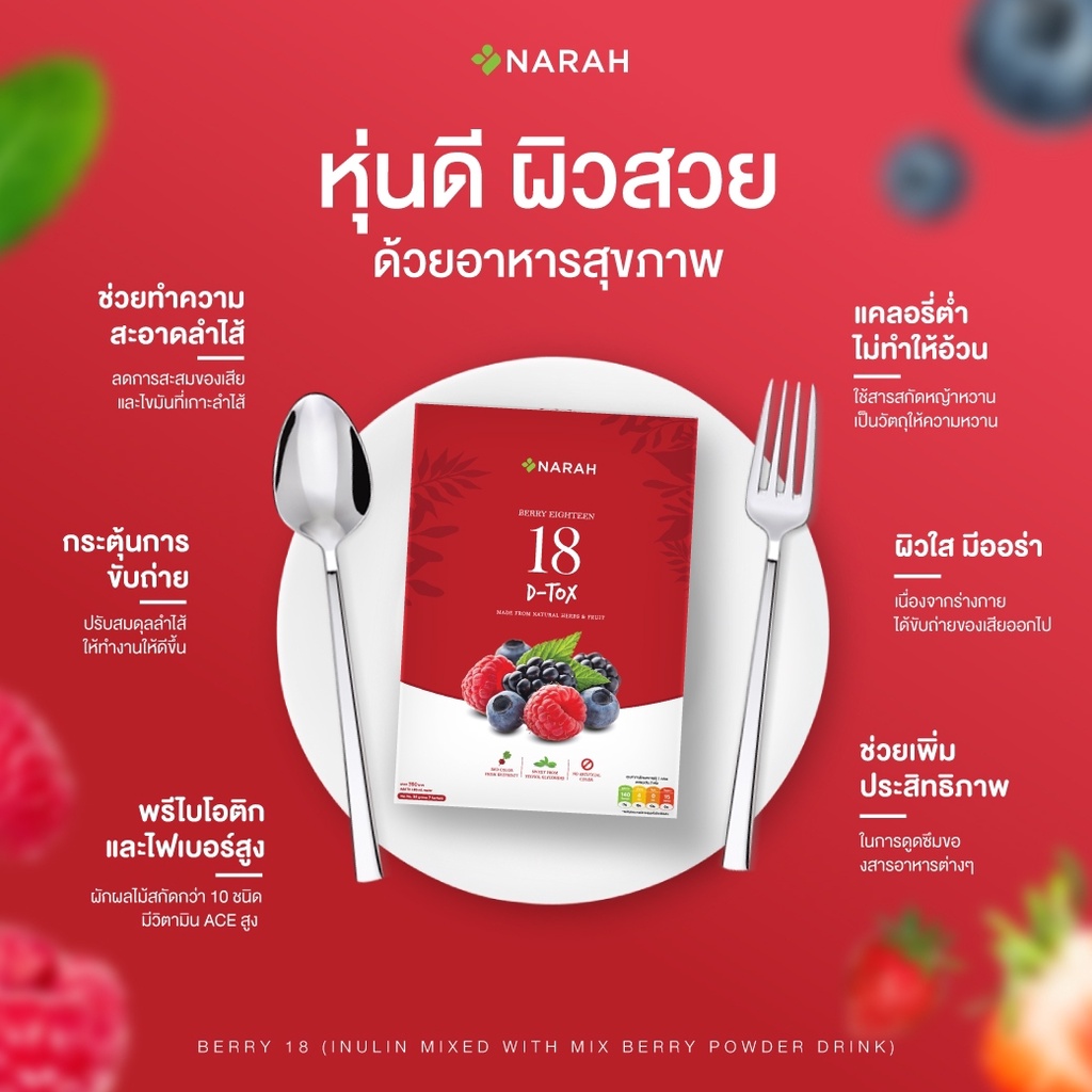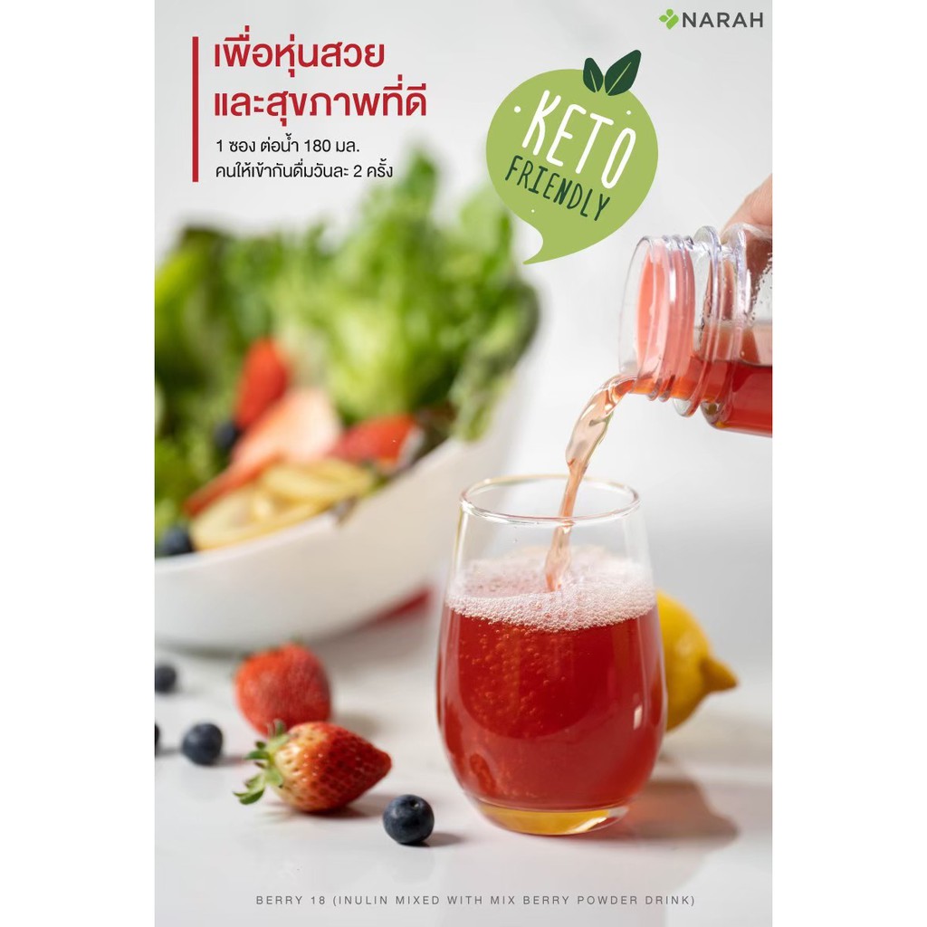 NARAH BERRY EIGHTEEN (เครื่องดื่มอินนูลิน ผสมผงมิกซ์เบอร์รี่ ชนิดผง ตรานราห์) ขนาดบรรจุ 7 ซอง