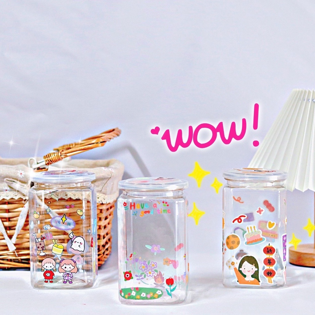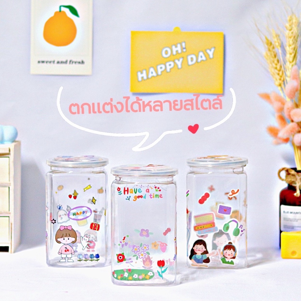 🔥ใหม่!!มาก่อนใคร กระปุกออมสินทรงใหม่ สติ๊กเกอร์ไดคัท ออมสินใส น่ารัก ไม่ซ้ำใคร