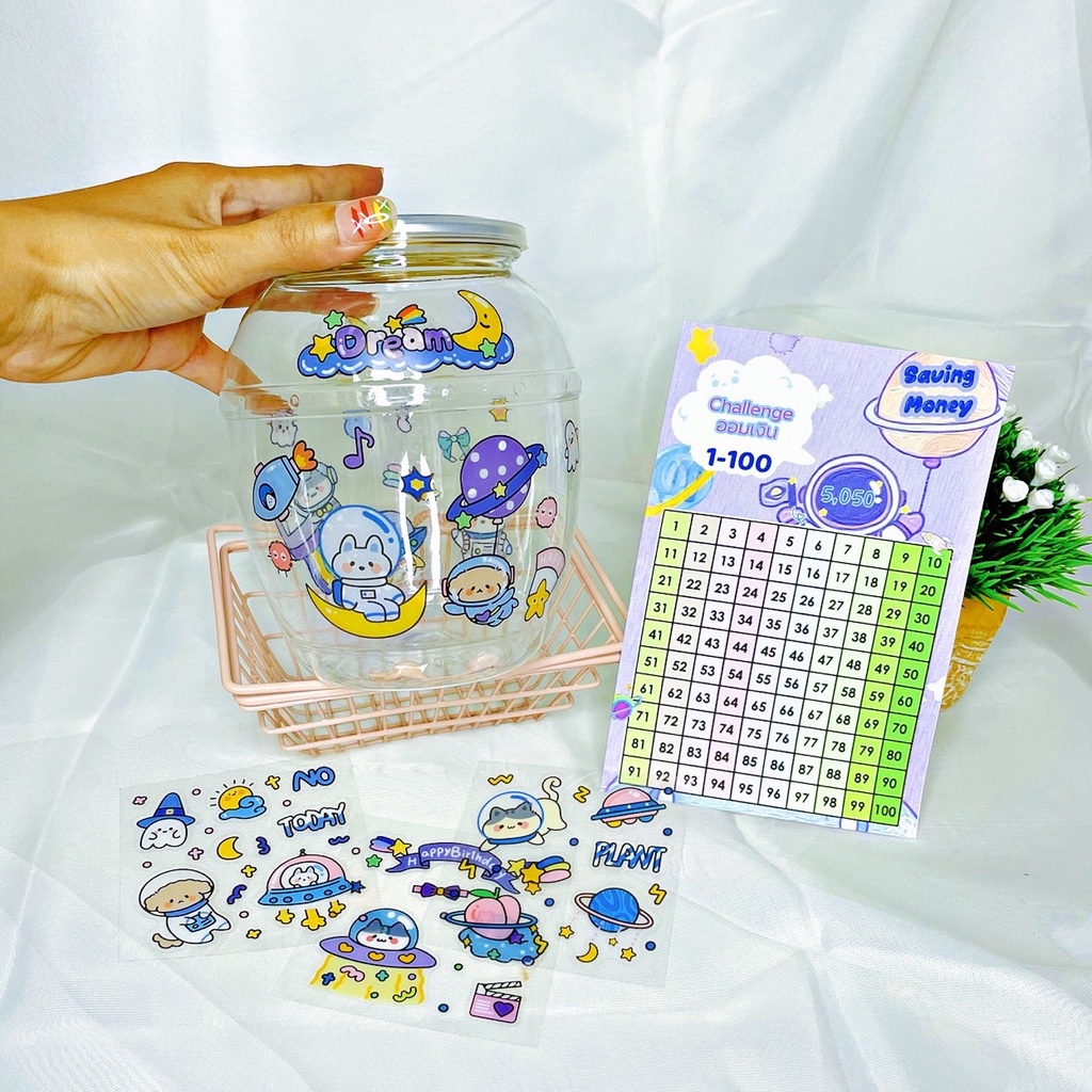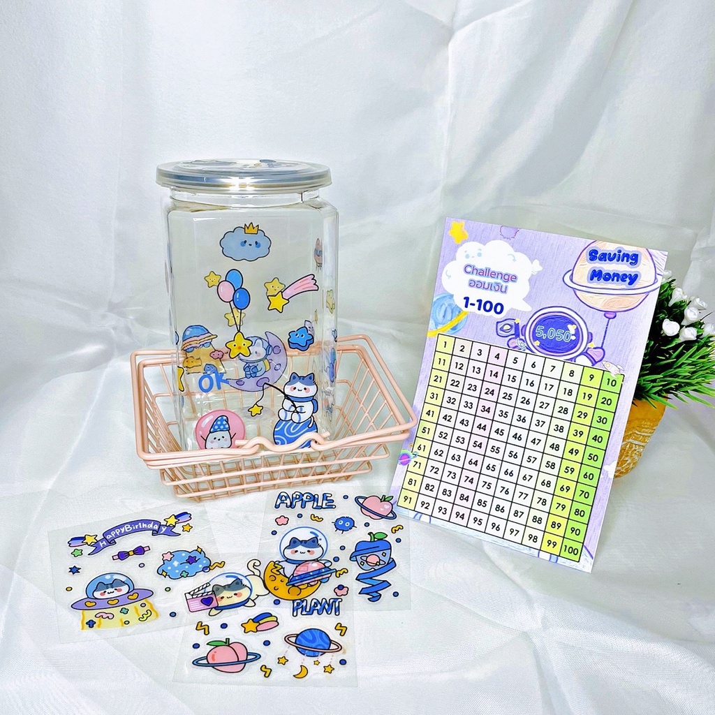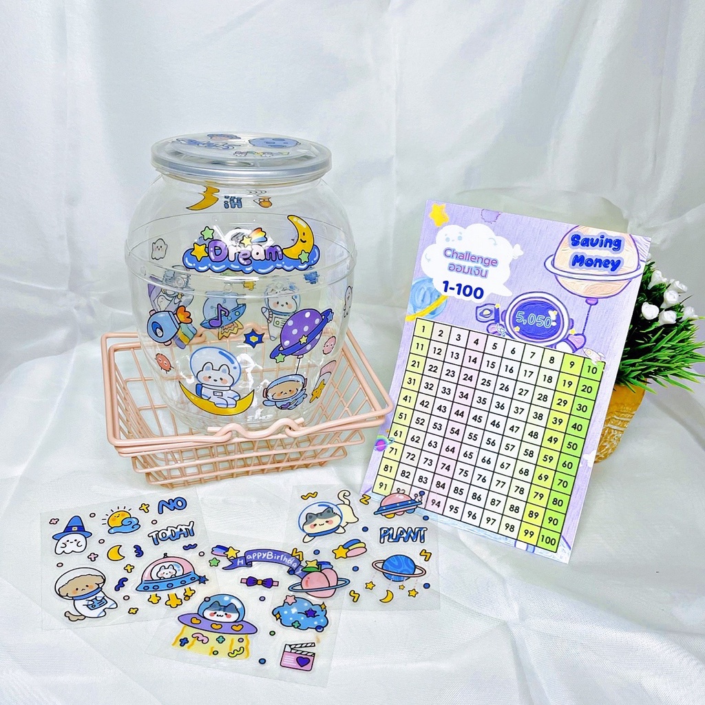 🔥 กระปุกออมสิน Setอวกาศ+ใบออมเก็บเงิน100วัน สติ๊กเกอร์อวกาศ3แผ่น น่ารัก