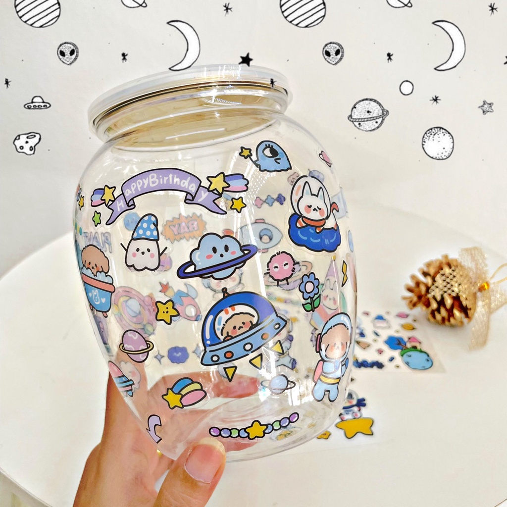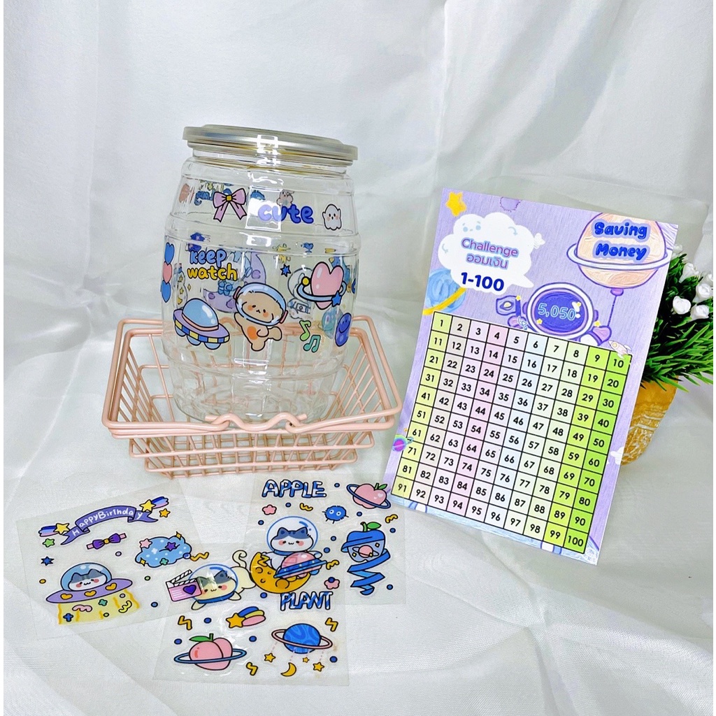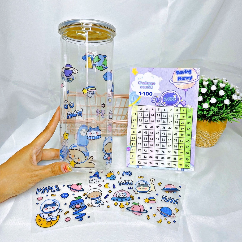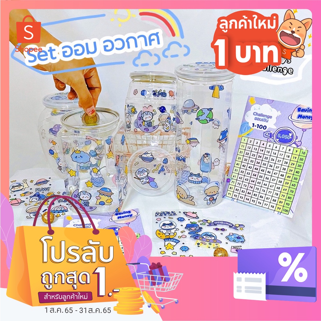 🔥 กระปุกออมสิน Setอวกาศ+ใบออมเก็บเงิน100วัน สติ๊กเกอร์อวกาศ3แผ่น น่ารัก