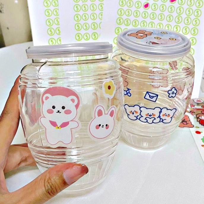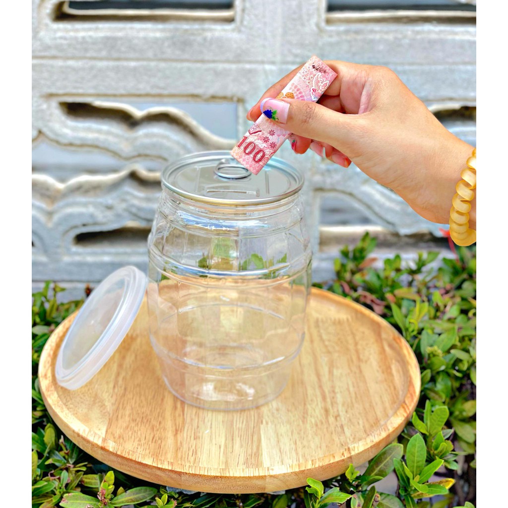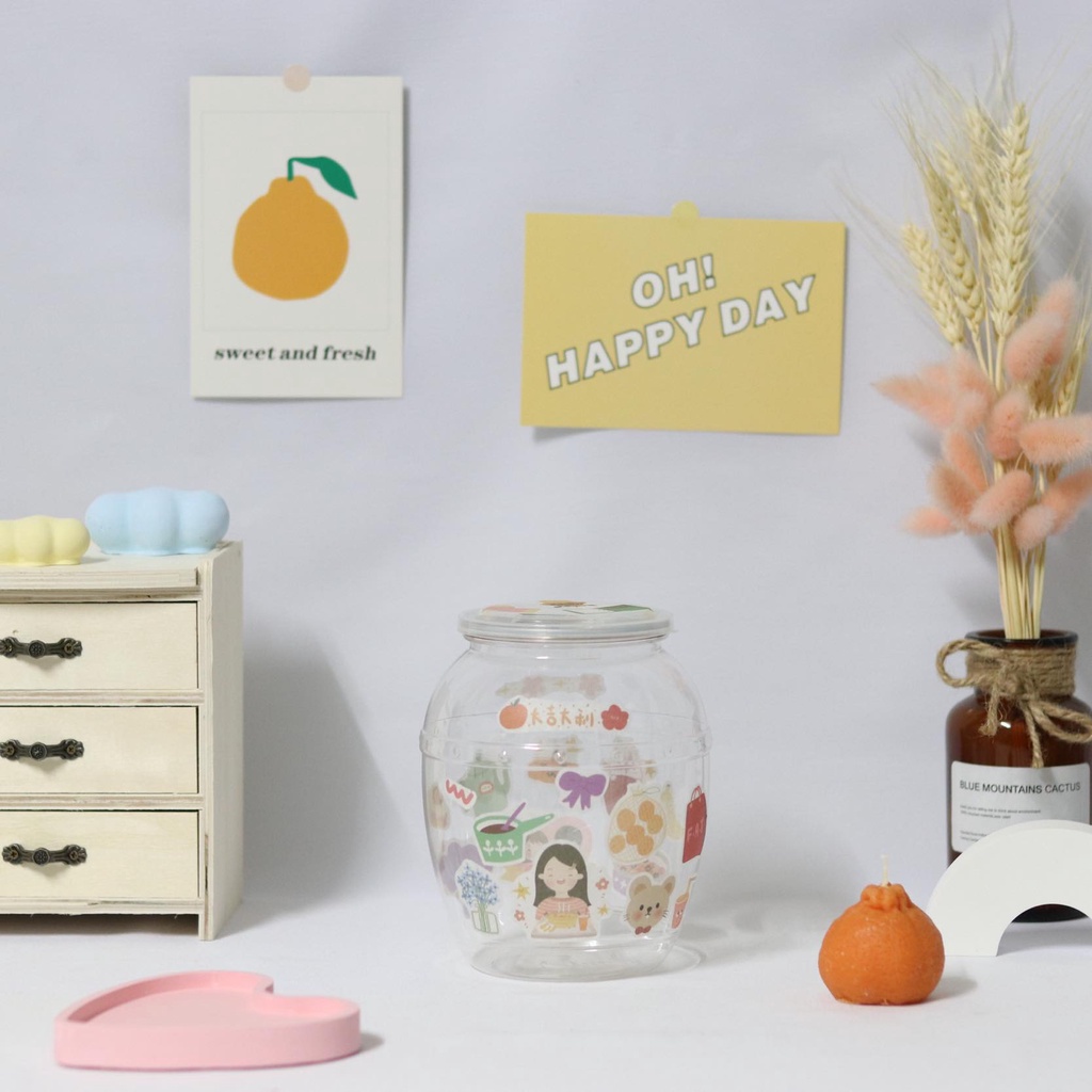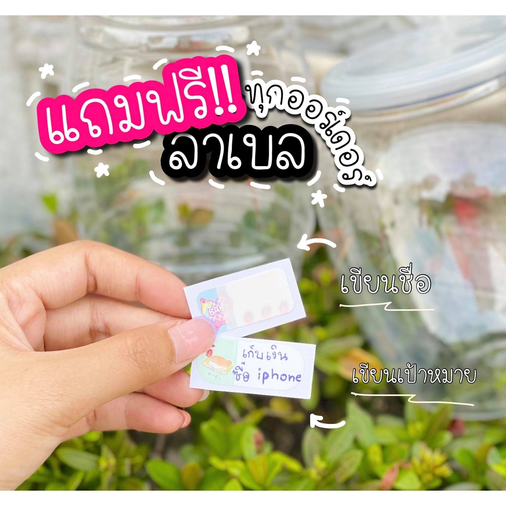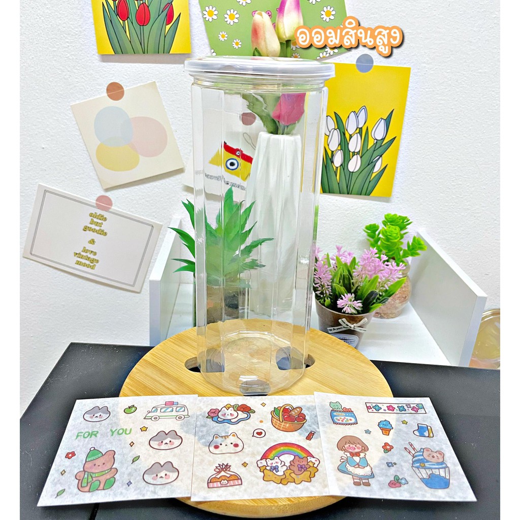 🔥ใหม่!!✨กระปุกออมสินใส(พร้อมสติ๊กเกอร์สีขุ่นไดคัท3แผ่น)รูปสินค้าจริง ทรงถัง โอ่ง สูง
