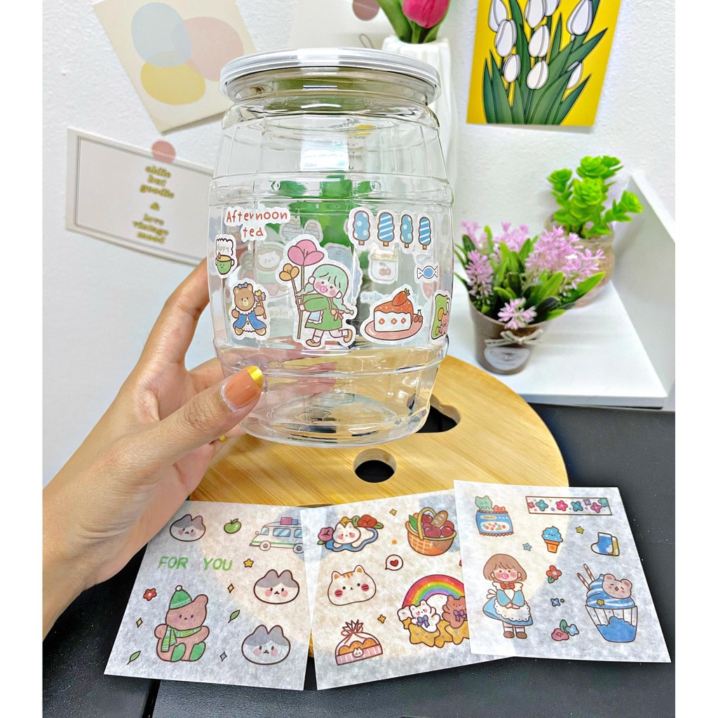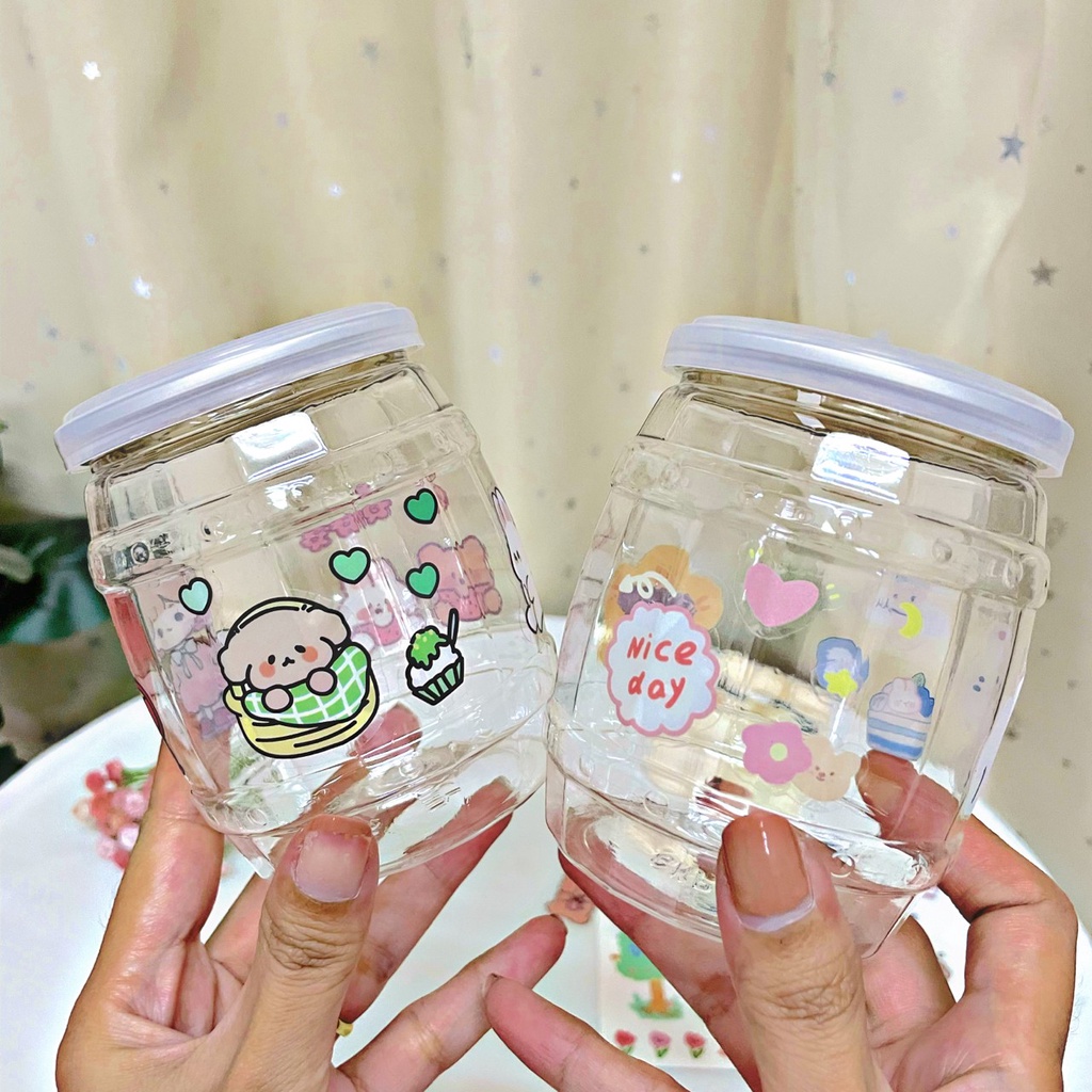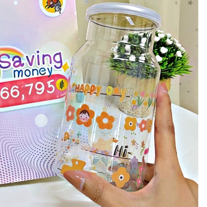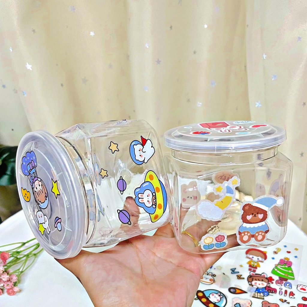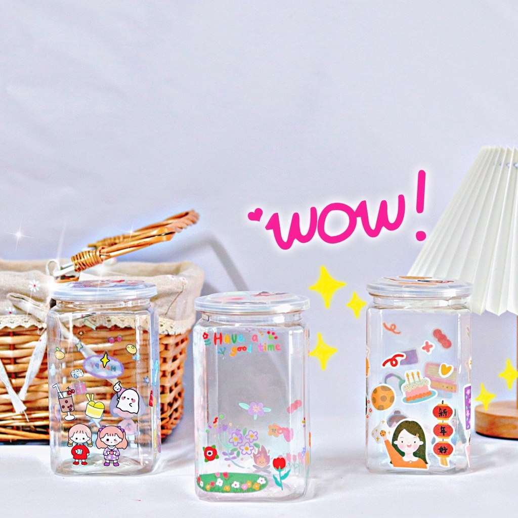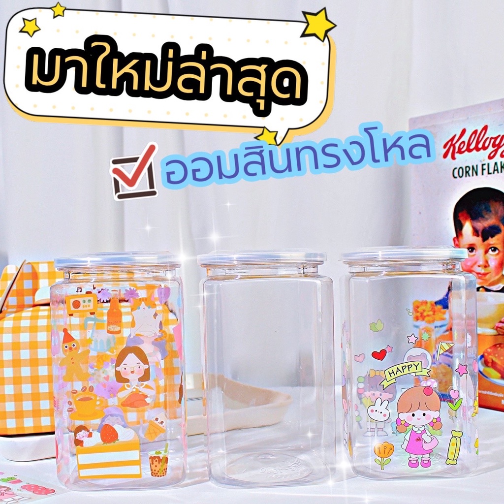 🔥ใหม่!!✨กระปุกออมสินใส(พร้อมสติ๊กเกอร์สีขุ่นไดคัท3แผ่น)รูปสินค้าจริง ทรงถัง โอ่ง สูง