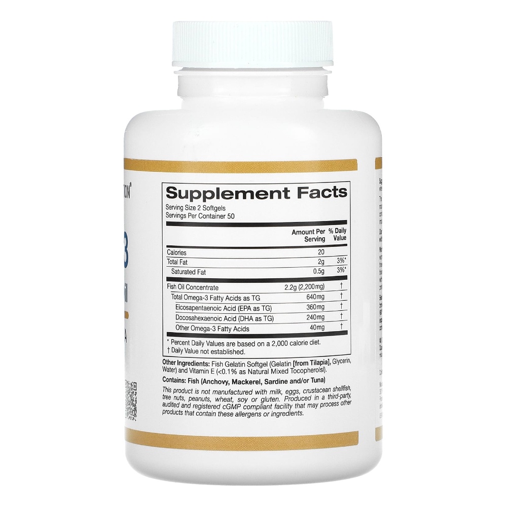 โอเมก้า3 California Gold Nutrition, Omega-3, Premium Fish Oil, 100 Fish Gelatin Softgels