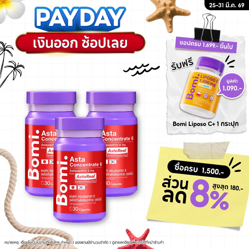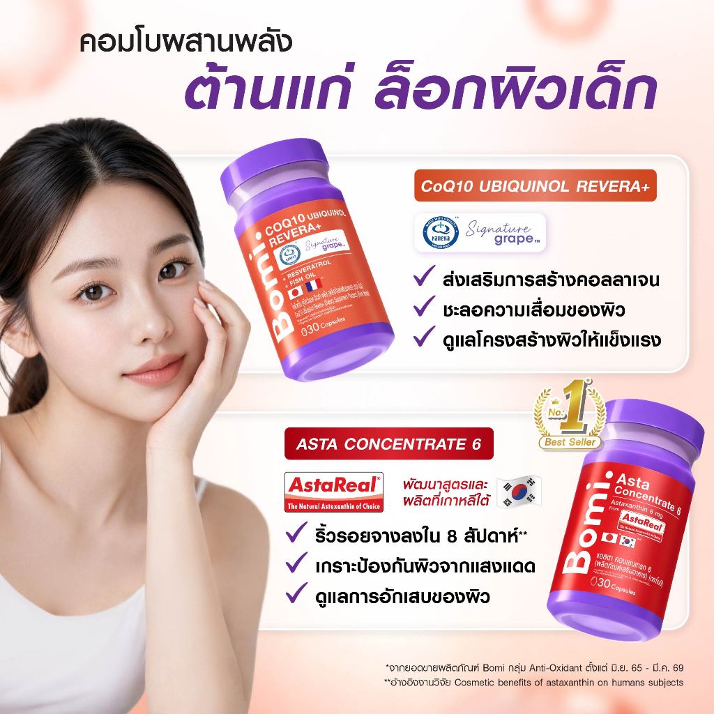 [3 กระปุก] Bomi AstaReal Asta Concentrate 6 (30 Capsules) โบมิ แอสตาเรียล แอสตา คอนเซนเทรท 6