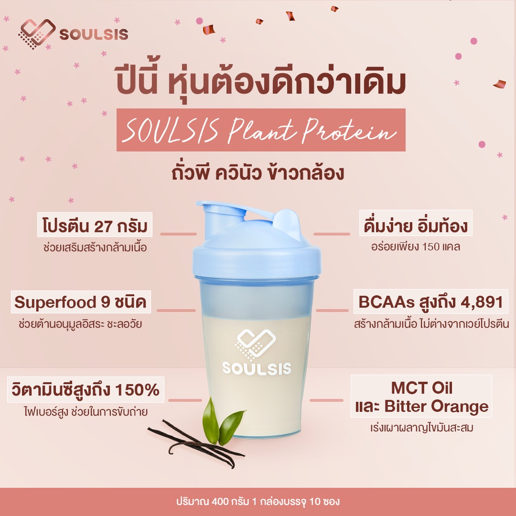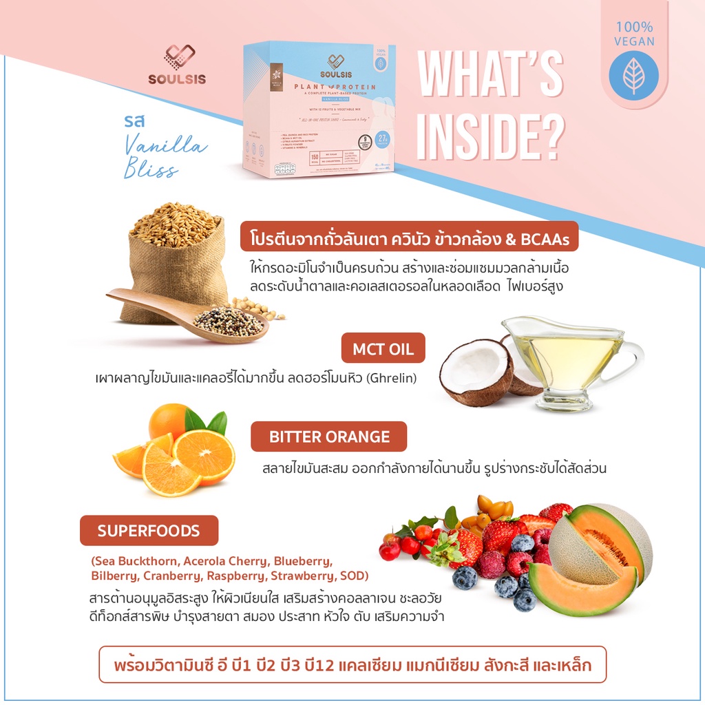 Soulsis Plant Protein โปรตีนพืช ผู้หญิง รส Vanilla สูตร Vegan แทนมื้ออาหาร เจ สร้างกล้ามเนื้อ