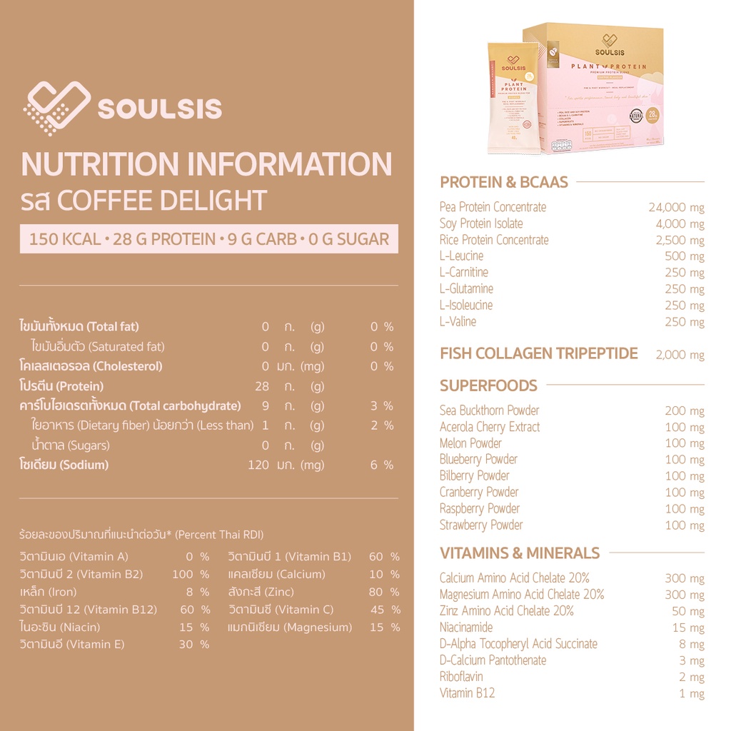 SOULSIS Plant Protein โปรตีนพืช รสกาแฟ สูตรลีน แทนมื้ออาหาร ก่อน-หลังออกกำลังกาย