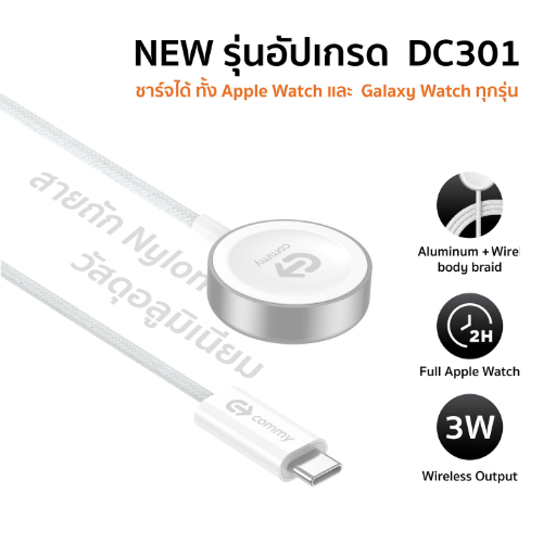 Commy ที่ชาร์จไร้สายสำหรับ Apple Watch สายชาร์จ Samsung Galaxy Watch ทุกรุ่น ไร้สาย รุ่นDC300,DC301