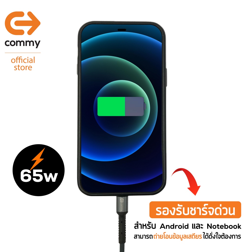 Commy สาย Premium ไนลอนถัก 16 ชั้น รองรับชาร์จไว iPhone ทุกรุ่น,Samsung Super fast charge 20W/ 65W