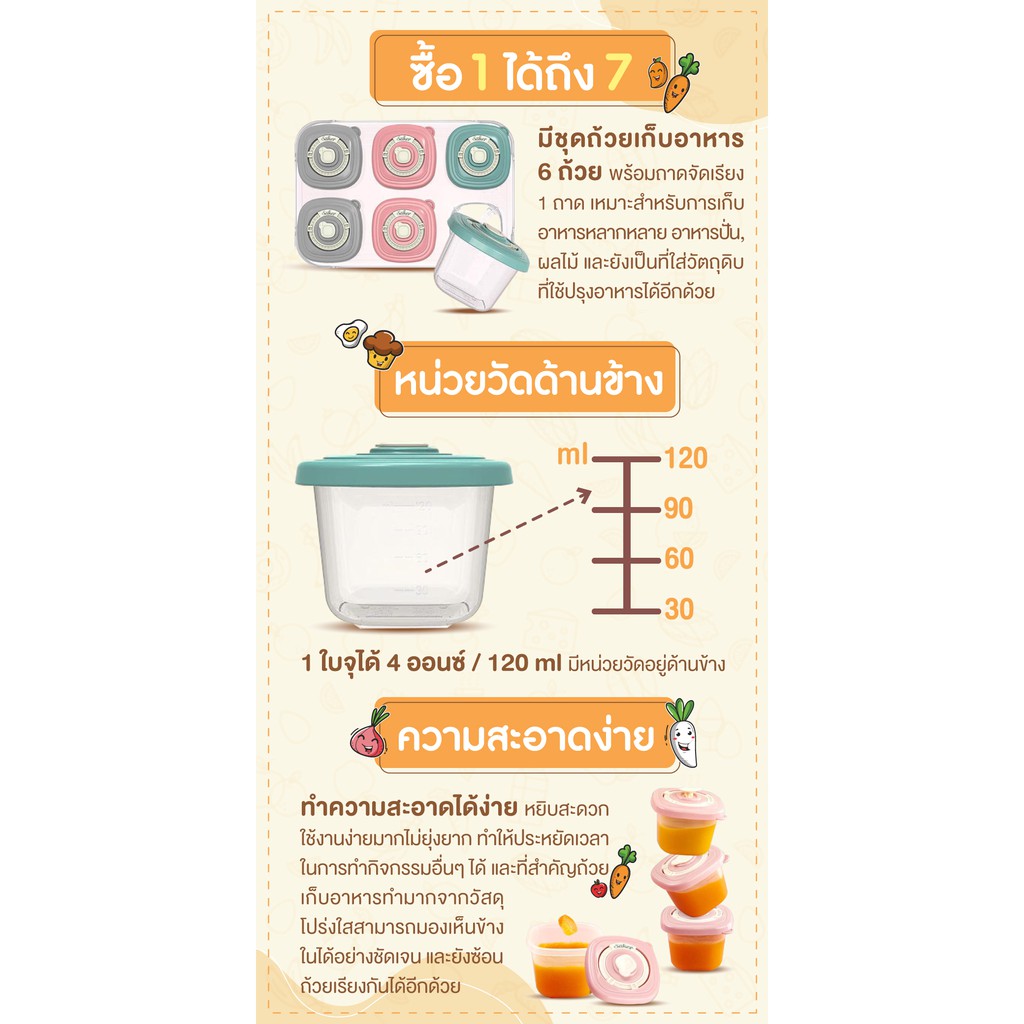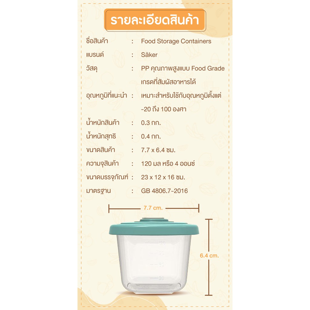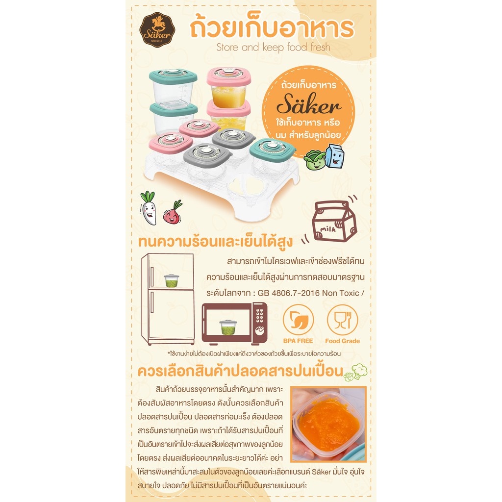 [ปลอดสารก่อมะเร็ง] Saker ถ้วยเก็บอาหาร ใช้เก็บอาหาร&นมสำหรับลูกน้อย ปลอดสารปนเปื้อน คุณภาพFood Grade