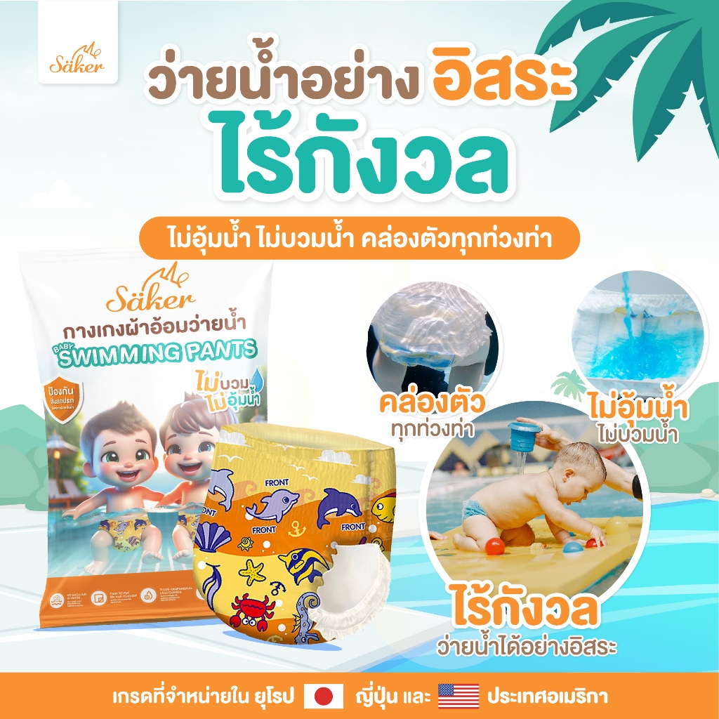 คล่องตัวทุกท่วงท่าSakerกางเกงผ้าอ้อมว่ายน้ำพรีเมี่ยม(เกรดขายในยุโรป,ญี่ปุ่น,USA)อิสระในการเคลื่อนไหว