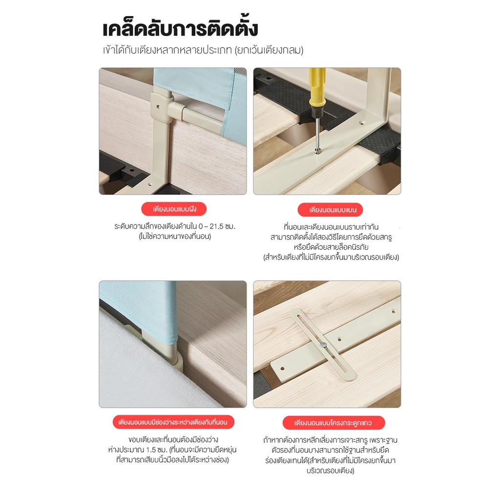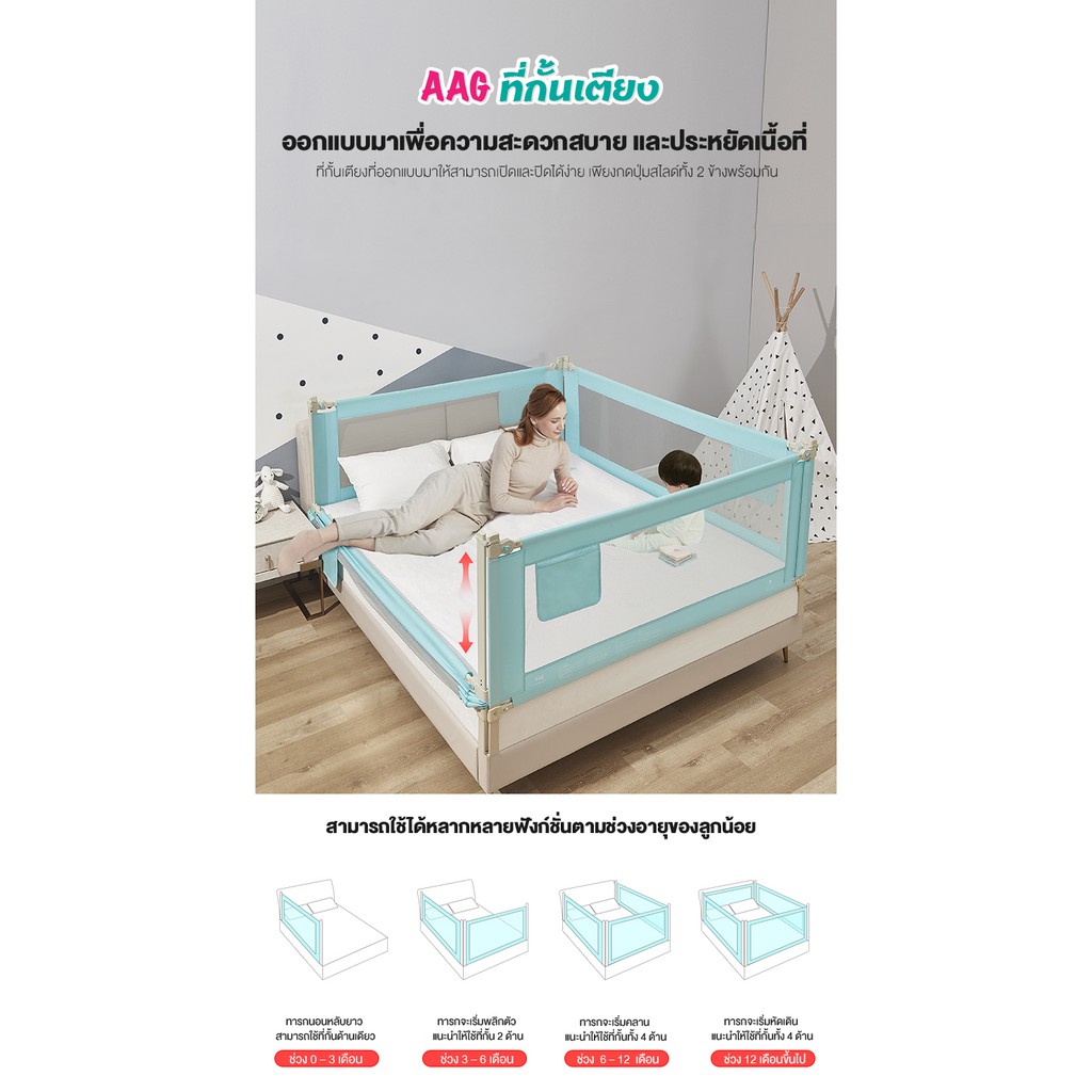 แบรนด์เกาหลี AAG ที่กั้นเตียงพรีเมี่ยมเกรด วัสดุและสีปลอดสารก่อมะเร็ง ไร้สารตะกั่ว ปรับระดับความสูงได้ 65-80cm.1ชิ้น