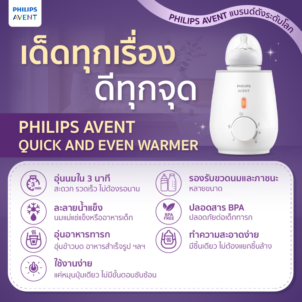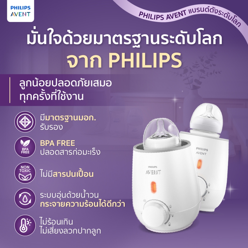 (อุ่นเร็ว พร้อมดื่มใน 3 นาที) Philips Avent เครื่องอุ่นนม อุ่นอาหาร ในปุ่มเดียว BPA FREE มีมอก.