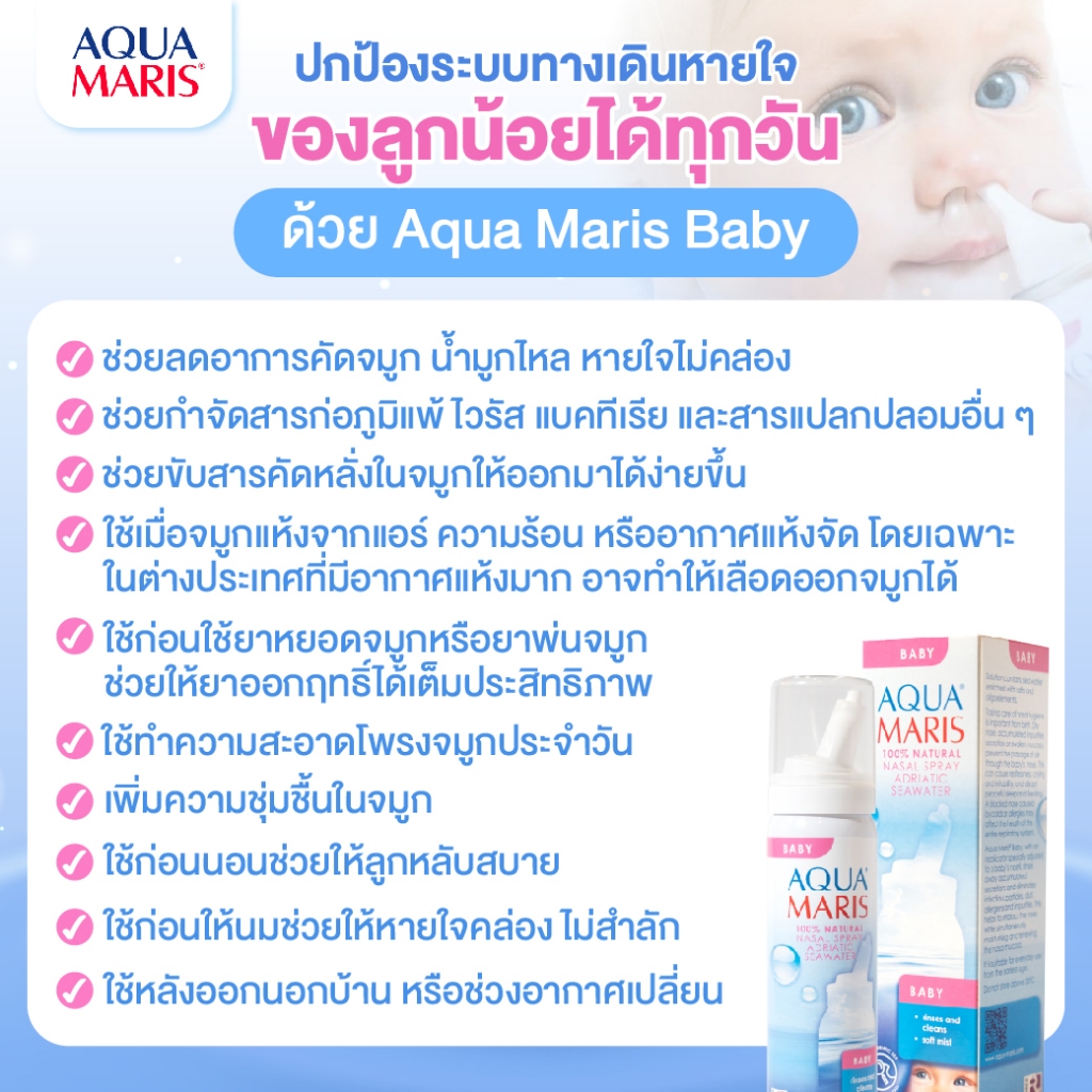 ของแท้ ล็อตใหม่(ใช้ได้ตั้งแต่แรกเกิด)Aqua Maris Baby สเปรย์พ่นจมูก ลดน้ำมูก ล้างจมูก หายใจโล่ง ดีมาก