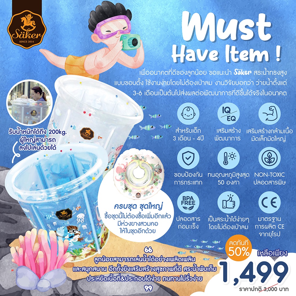 (ล็อตใ หม่) Saker สระว่ายน้ำเด็กทรงสูงแบบตั้ง ปลอดสารก่อมะเร็ง สำหรับเด็ก 3 เดือน - 4 ปี วัสดุอย่างดี