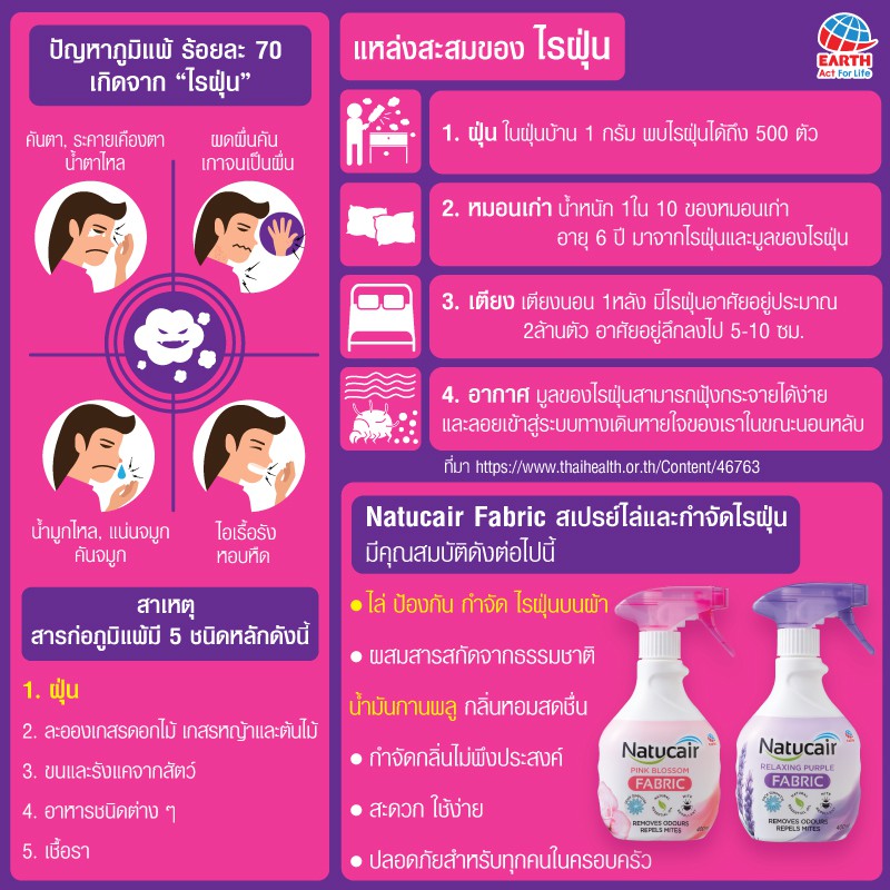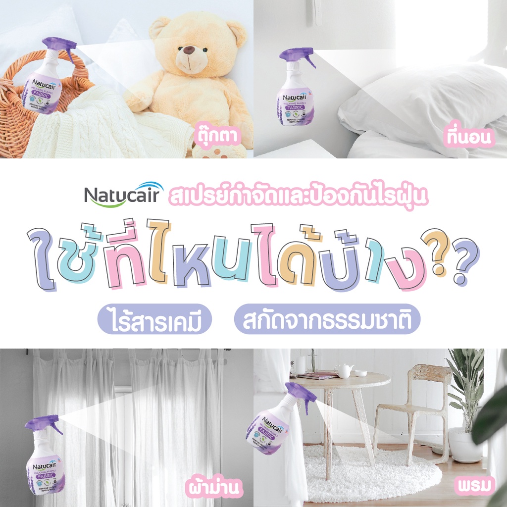 เนเชอร์แคร์ แฟบริค สเปรย์กำจัดและป้องกันไรฝุ่น กลิ่นรีแล็กซ์ซิ่ง เพอเพิ้ล 400 มล. NATUCAIR FABLIC RELAXING PURPLE 400mL
