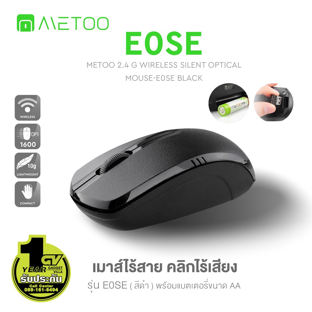 METOO รุ่น E0 2.4G Wireless เมาส์ไร้สาย คลิกไร้เสียง สำหรับ คอมพิวเตอร์ เม้าส์มาตรฐาน ใช้งานง่าย