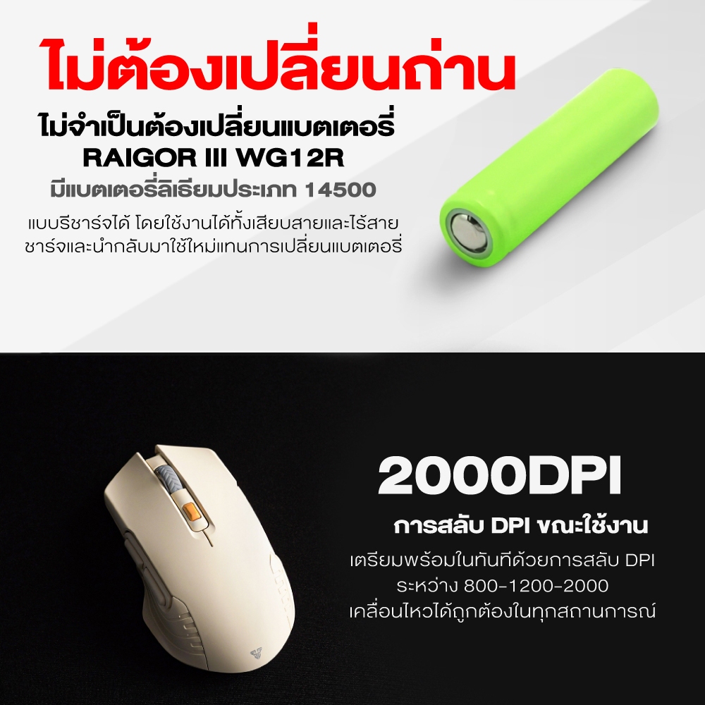 FANTECH Wireless Mouse เมาส์ไร้สาย Gaming เมาส์เกมมิ่งไร้สาย 800-2000 DPI มีแบตเตอรี่ในตัว รุ่น WG12R