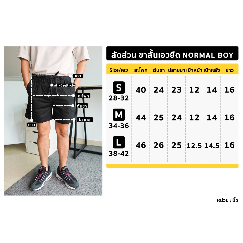 กางเกงขาสั้น 16 นิ้ว เอวยางยืด ผ้าชิโน่ยืด เอว 28-42 by Normal Boy
