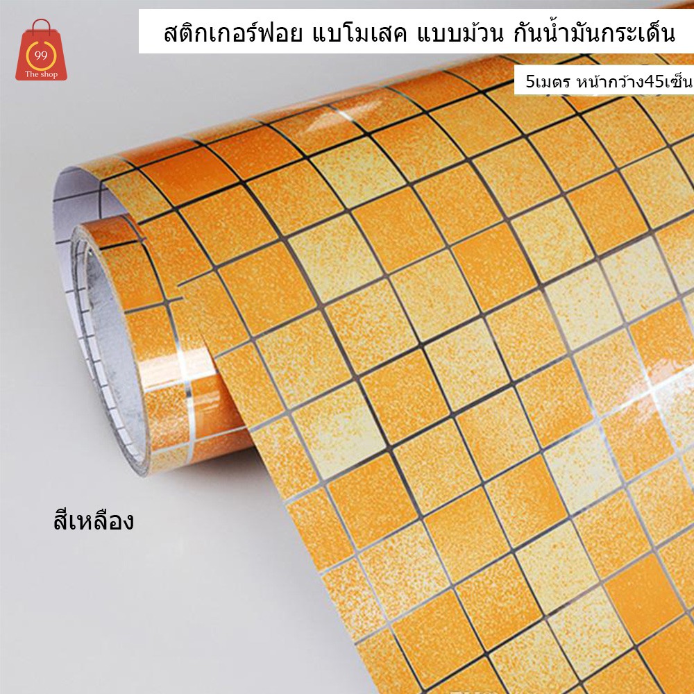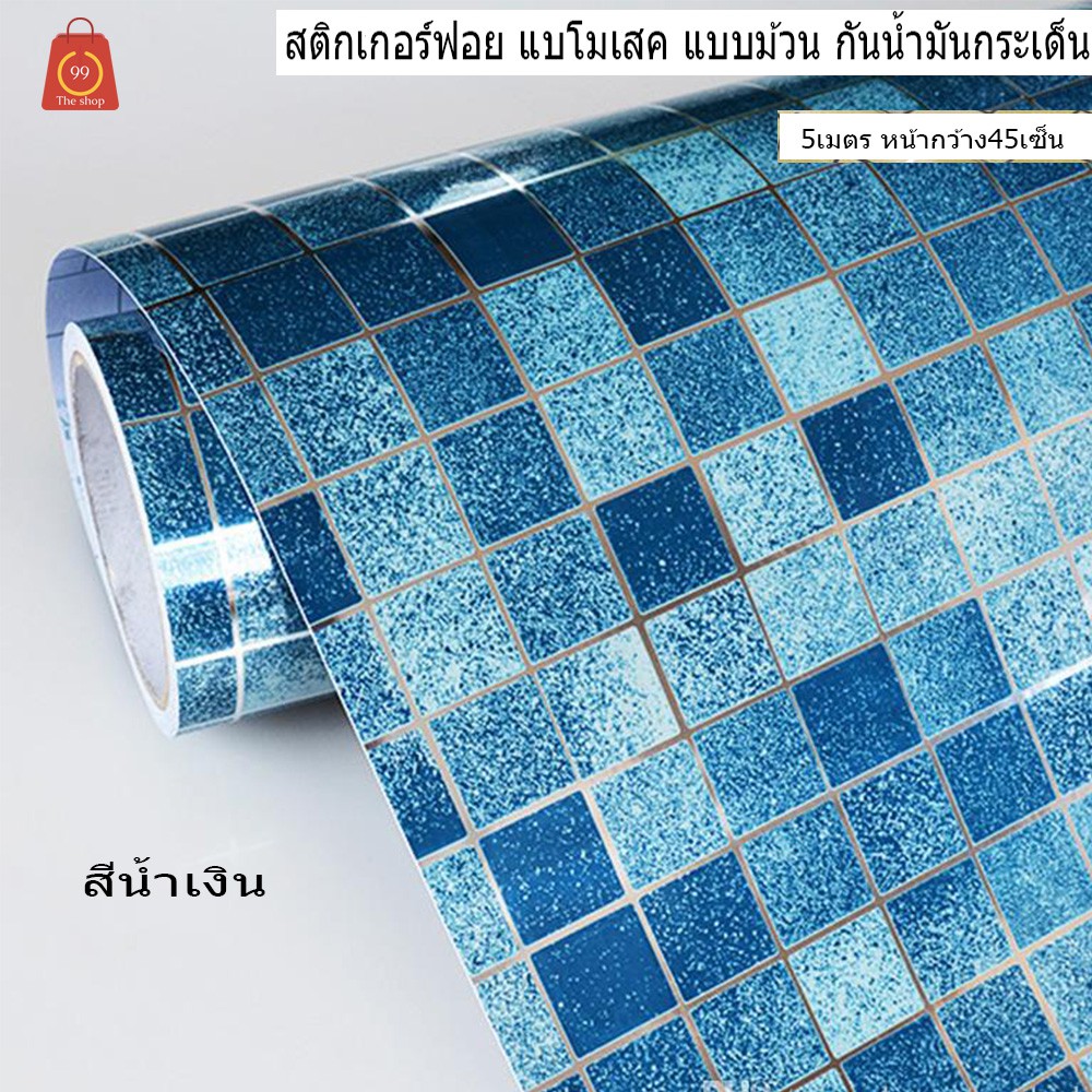 สติกเกอร์ฟอยด์กันน้ำมันกระเด็น 5เมตร ลายโมเสก และลาย กราฟฟิก อื่นๆๆมีเยอะมาก แบบม้วน ไม่มีรอบพับ วอลเปเปอร์ วอล์ติดผนัง