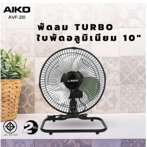 AIKO พัดลมตั้งโต๊ะ turbo รุ่น AVF-210 ขนาด 10 นิ้ว ส่ายได้ ใบพัดอลูมิเนียม