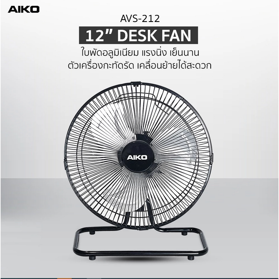 AIKO พัดลม ตั้งโต๊ะ TURBO รุ่น AVS-212 ขนาด12 นิ้ว ส่ายได้ ใบพัด อลูมิเนียม ปรับแรงลมได้ 3 ระดับ