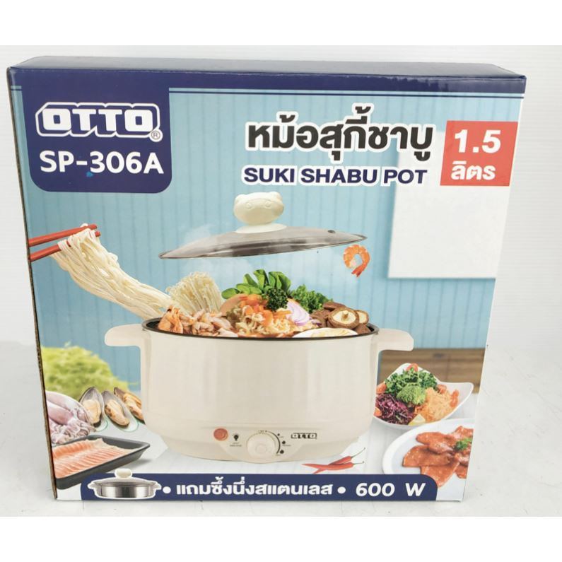 OTTO หม้อสุกี้ ชาบู รุ่น SP-306A ความจุ 1.5 ลิตร มีซึ่ง ฝาแก้ว หม้อต้มเอนกประสงค์ หม้อไฟฟ้า กระทะไฟฟ้า กำลังไฟ 600 วัตต์
