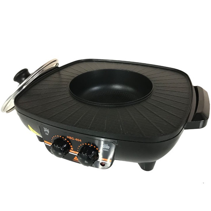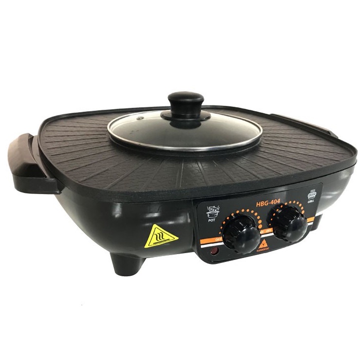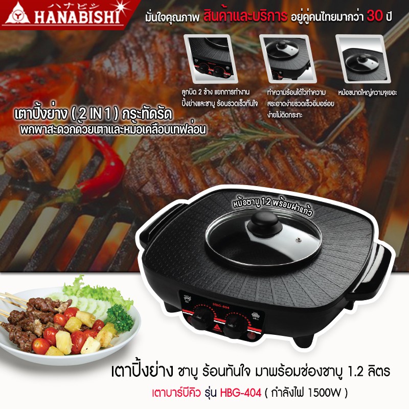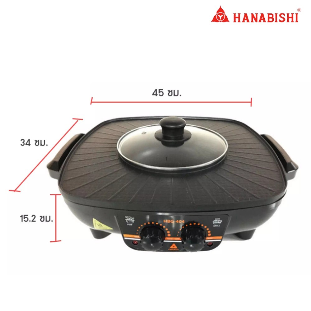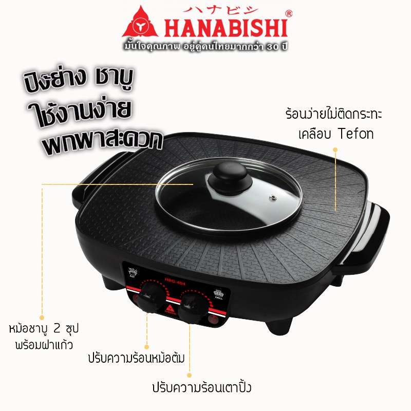 HANABISHI เตาปิ้งไร้ควัน รุ่น HBG-404 เตาบาร์บีคิว เตาปิ้งย่าง ชาบู เตาย่างไฟฟ้า 2 สวิตท์ กำลังไฟ 1500 W