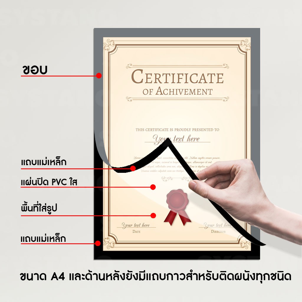 Systano กรอบรูปแม่เหล็ก กรอบโชว์ป้ายประกาศติดผนัง ขนาด A4 แบบมีแถบแม่เหล็กสำหรับติดโชว์งาน ใบประกาศ เอกสาร NO.Y374
