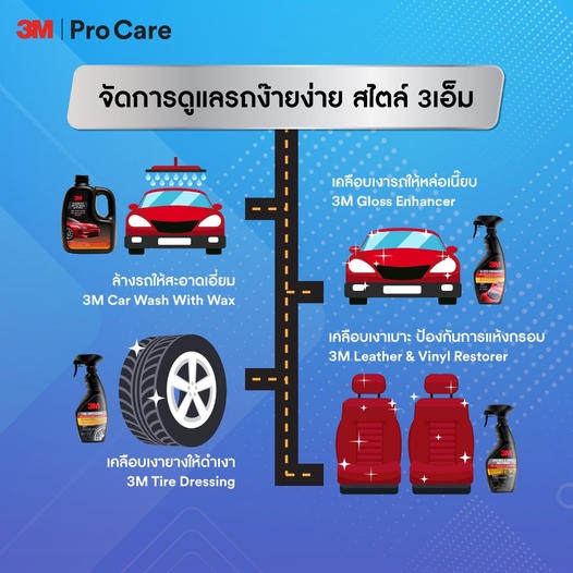 3M แชมพูล้างรถ+น้ำยาเคลือบสี+น้ำยาเคลือบยาง+น้ำยาเคลือบเบาะ(ชุด 4 ชิ้น)