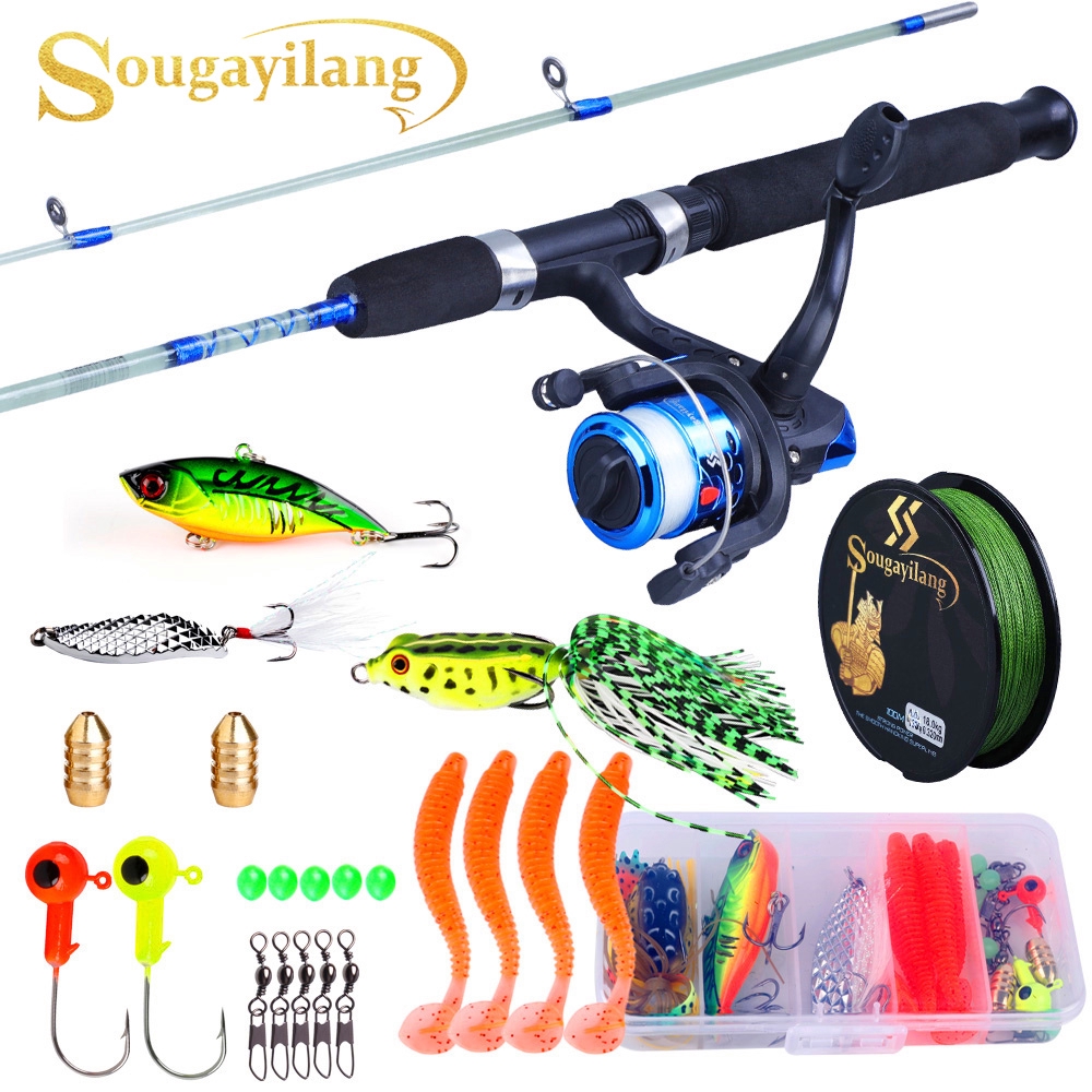 Sougayilang คันเบ็ดและรอกสายล่อ แบบ 2 ส่วน สำหรับตกปลาน้ำเค็ม น้ำจืด รอกสปินนิ่ง รอกสปิน คันเบ็ด เบ็ดตกปลา คันเบ็ดตกปลา
