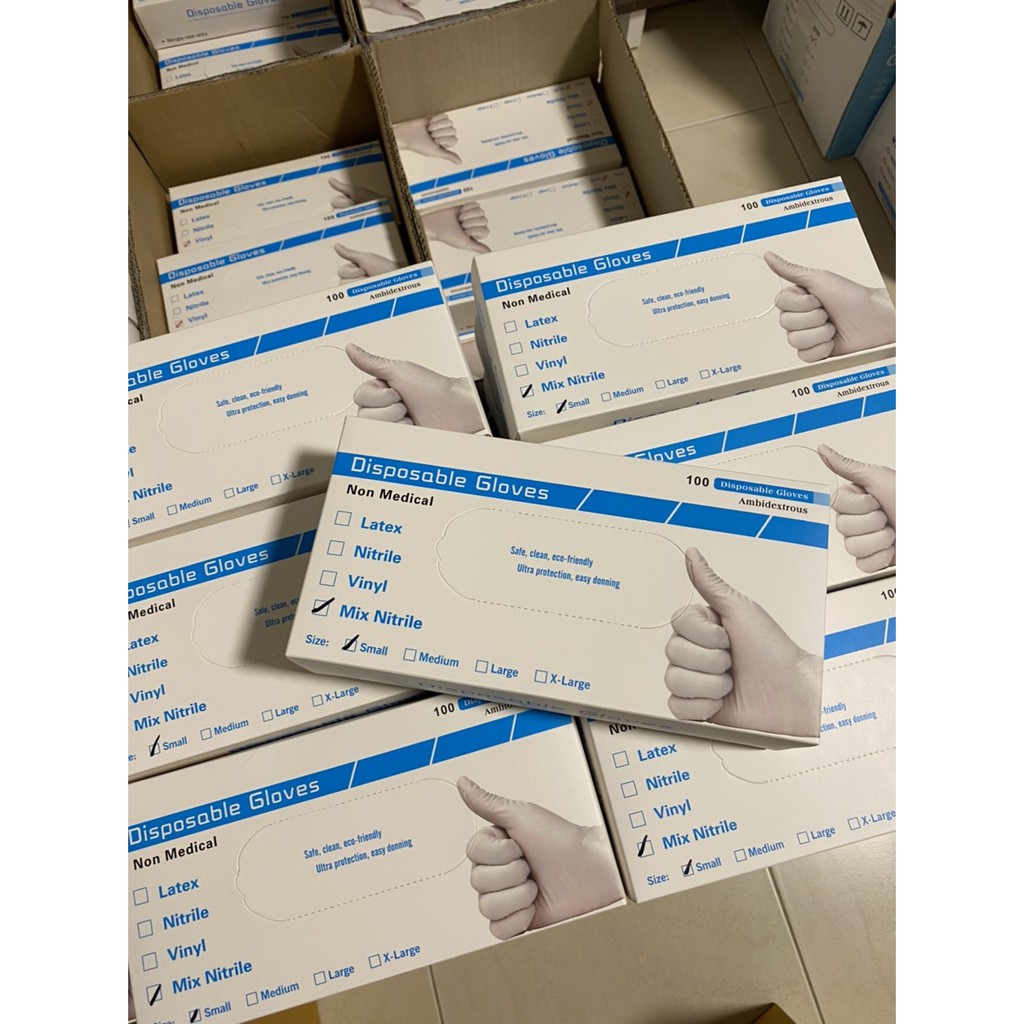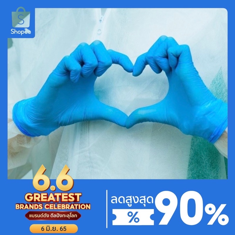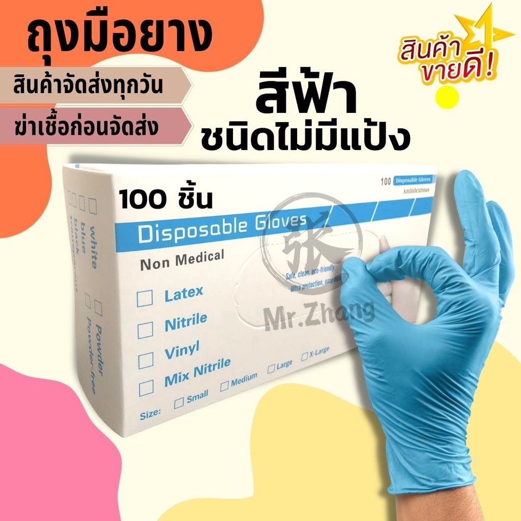 ถุงมือยางไนไตร ไวนิล สีฟ้า ไม่มีแป้ง100ชิ้น