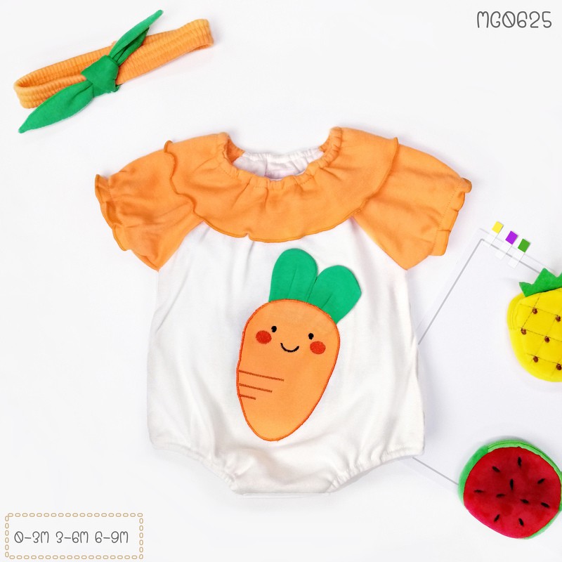 ชุดเด็ก บอดี้สูท แขนสั้น พร้อมผ้าคาด ลายแครอท