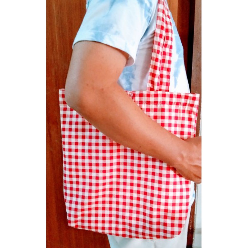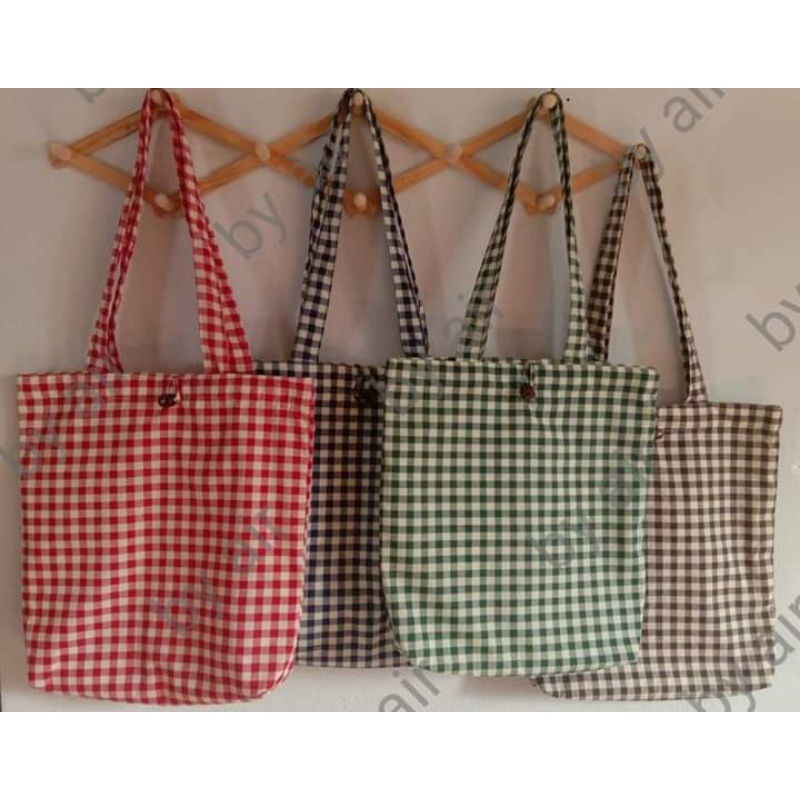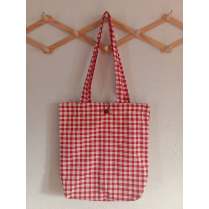 กระเป๋าผ้าลายสก๊อต มีซับใน ,มีช่องด้านใน, สะพายข้างได้ 🌼