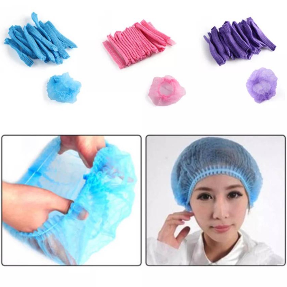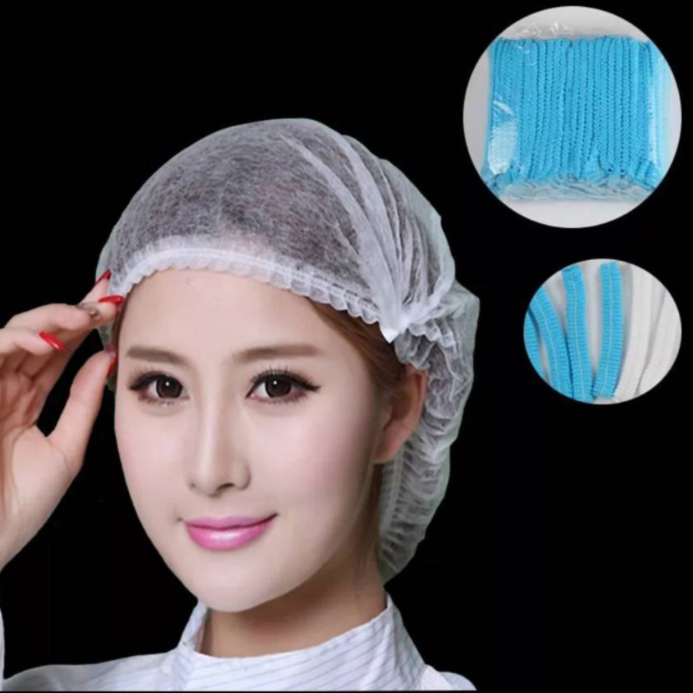 หมวกคลุมผมอนามัยใยสังเคราะห์ หมวกตัวหนอนใช้แล้วทิ้ง บรรจุแพค 50 และ 100 ชิ้น ที่คลุมผม